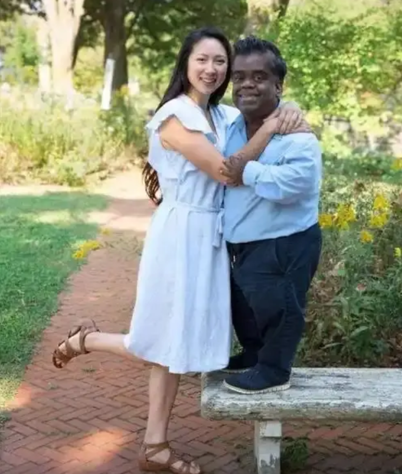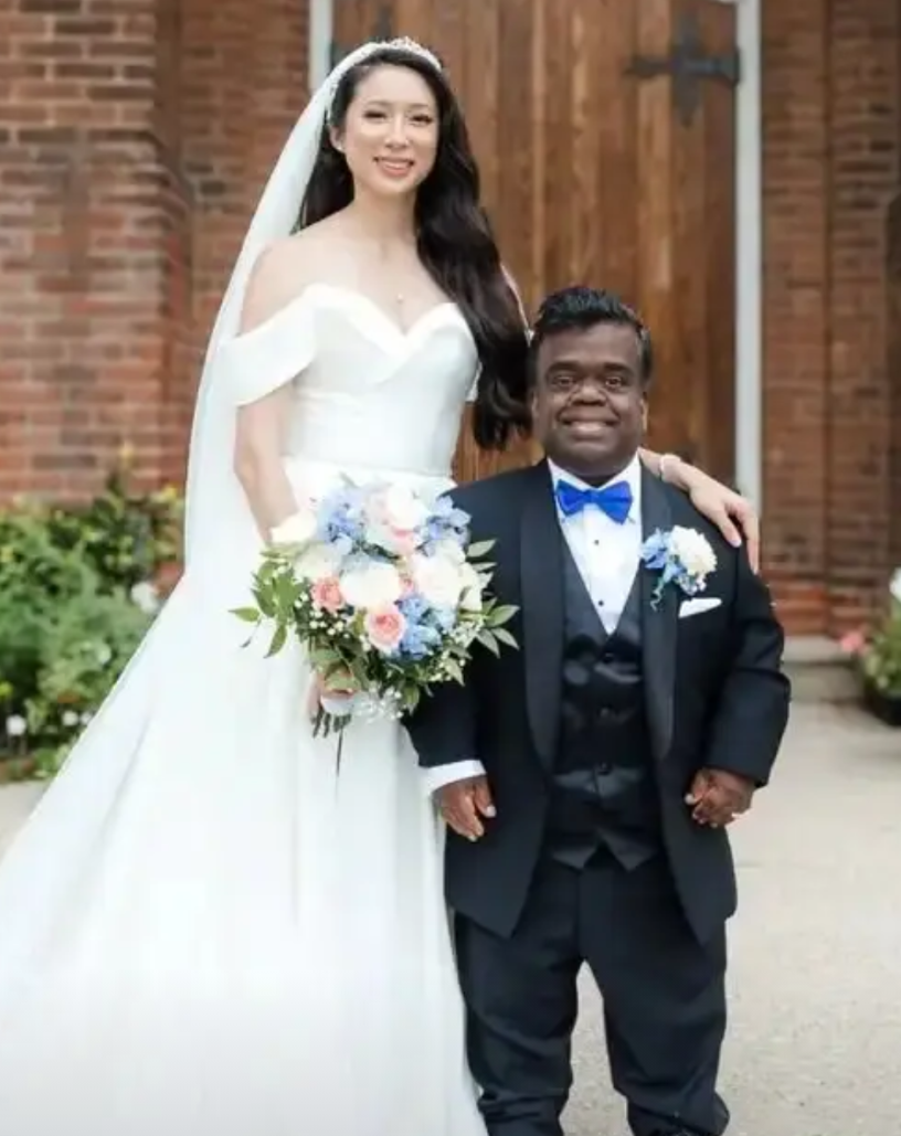 最近,一场在加拿大举行的婚礼引起了轩然大波!身高1.62米的亚裔美女阿妮塔·温·李竟然嫁给了一位身高只有1.2米的印度裔男子蒂莫西·穆图,他们的结婚照还被一些网友质疑是“AI生成”!新娘本人已经在网上进行了反驳。那么,这背后究竟有什么故事呢? “这个女的就是图南方的钱,要不是谁愿意交给1米2的人,这还不如武大郎呢!” 在无数人的嘲讽声中,他们二人还是完成了属于自己的婚礼。 这段感情从两人相识开始就不被所有人看好。 在一次社区搞志愿者活动,阿妮塔被安排去整理活动物资。 蒂莫西负责跟参加活动的人沟通协调。 阿妮塔忙得晕头转向的,一不小心就把一摞资料给撞翻了,文件撒得满地都是。 她当时就慌了,手忙脚乱地想捡起来。这时候蒂莫西“嗖”地一下跑过来,蹲下身子跟她一起收拾。 蒂莫西的细心,让阿妮塔给看在眼里,阿妮塔那可爱真诚的模样,也把蒂莫西的心给勾走了。 活动结束后,他俩就互相留了联系方式。 相处久了,阿妮塔越来越被蒂莫西的坚强乐观给感染。 生活里难免会遇到各种事,可蒂莫西总能用积极的心态去面对,还特别会讲笑话,三言两语就把尴尬和压力给化解。 爱情来了,身高、种族在阿妮塔和蒂莫西眼里都不是事。 他俩觉得,真正的爱情是两颗心贴在一起,相互尊重、相互理解。 可周围的人不这么想啊,各种闲言碎语就来了。 有些人不理解,说阿妮塔这么漂亮,咋找个这么矮的男朋友。 还有人恶意揣测蒂莫西是图阿妮塔。 面对这些压力,阿妮塔和蒂莫西紧紧抱在一起,互相打气,不管遇到任何困难,都要一起扛。 经过一段时间的准备,阿妮塔和蒂莫西终于迎来了他们的婚礼。 婚礼现场布置得那叫一个温馨浪漫,到处都是鲜花,彩带飘飘的,每个小细节都透着爱意。 阿妮塔穿着洁白的婚纱,美得像个童话里的公主。 蒂莫西穿着笔挺的西装,虽然个子矮,但眼神里全是自信和幸福。 在亲朋好友的祝福声中,他俩手牵手走过红毯。 现在,阿妮塔和蒂莫西还甜甜蜜蜜地生活在一起。 他俩一起面对生活里的柴米油盐,用爱书写着属于他们的美好未来。 相信真爱无界,勇敢去爱!