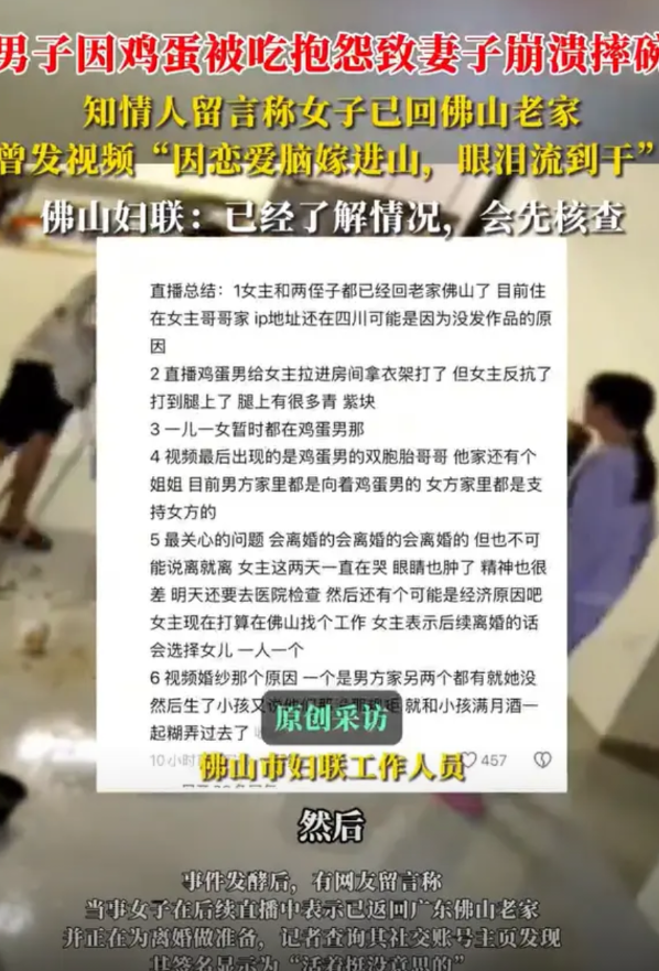 “鸡蛋男”的事全网皆知!作为一个四川人,真是替这个“背时鬼”汗颜!这下子“穷四川”的污名算是坐实了!广东佛山那么富的地方嫁过来的姑娘,你娃居然不舍得两个鸡蛋啊!