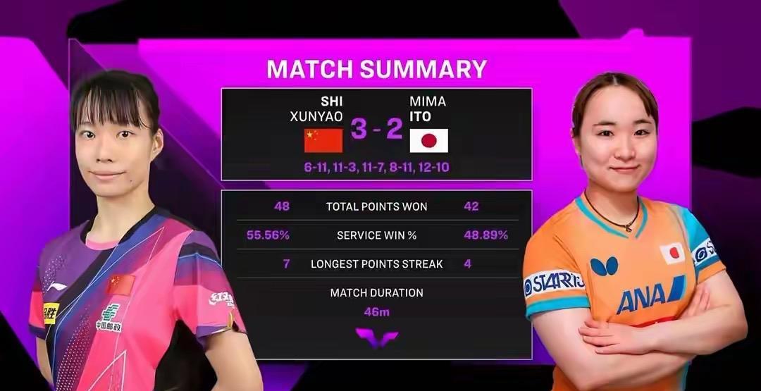 赢球就笑输球却哭的伊藤美诚又哭了,她是2:3输给了新生代球员石询瑶,这场比赛打的