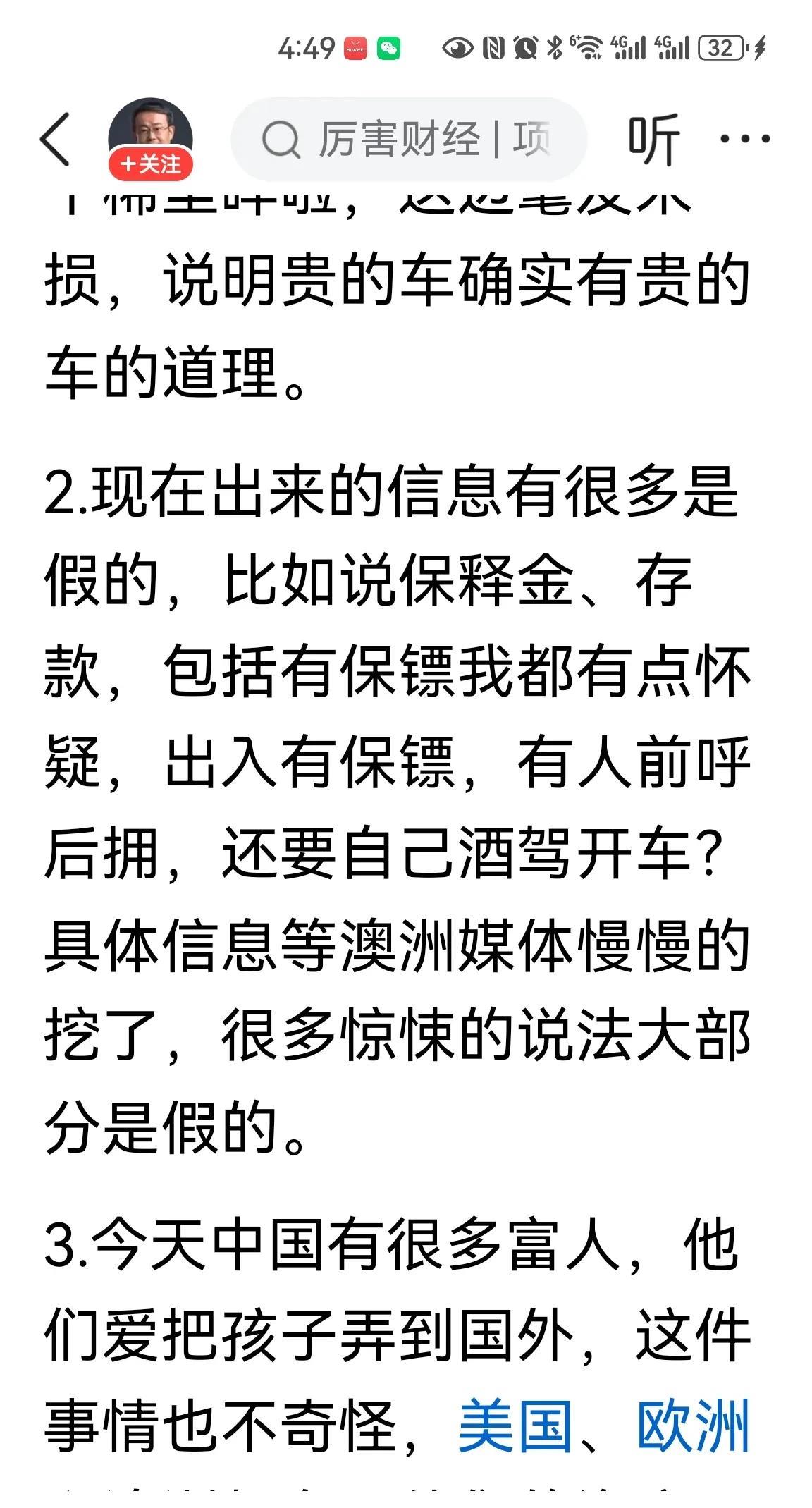 这次我可不站项立刚那边! 网上闹得沸沸扬扬的舆论,就是关于杨兰兰那事儿,到了他那儿就跟拿根小羽毛轻轻扫了一下似的,一笔带过了。他说啊,中国有钱人一抓一大把…… 没错。中国人在海外的确实不少,富豪更是其中的主力军,澳洲人仇富也不是没可能,可就这么轻飘飘一句“中国有钱人多了”,难道就透着股优越感了? 且先不管那些富豪的钱来得正不正,光一句“澳洲人越来越嫉妒中国人”,这就跟个土老财在显摆自己的阔气一样? 不过呢,他说中国没征收“脱籍税”,大量资金流出去了,是得征税,这一点还真算是说到点子上了。