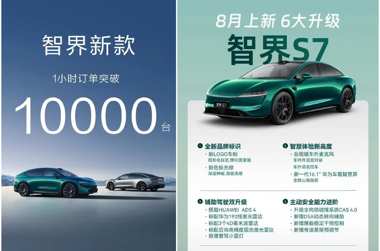 李连杰给女儿下定了新款智界R7!智界新款1小时订单突破10000台,9月份上市,