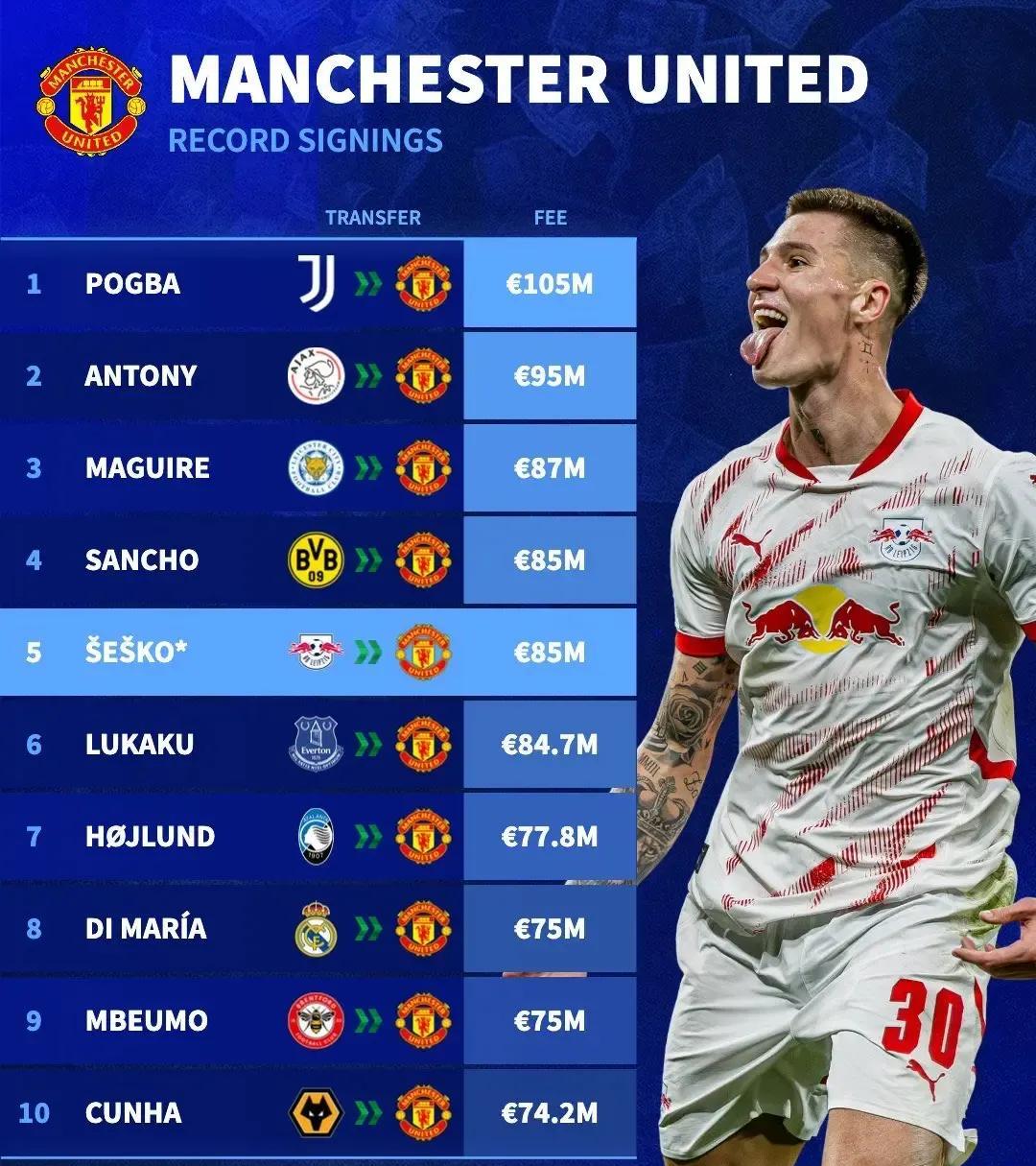 恐怖的红魔三叉戟! 塞斯科他来了,哪怕没有欧冠,甚至没有次一级的欧战,也义无反顾的追寻偶像伊布的脚步投奔而来。 就此阿莫林得到了一个全新的锋线三叉戟! 库尼亚+姆贝莫+塞斯科!这3名前锋红魔一共花了惊人的2亿英镑!三人也全部进入曼联历史引援TOP10榜单。 上赛季三名前锋的数据表现: 库尼亚36场17球6助攻; 姆贝莫42场20球8助攻; 塞斯科45场21球6助攻。 这里库尼亚和姆贝莫在英超久经考验,基本没有水的可能,但塞斯科不一样,虽然球员的身体素质非常出色,但并不能保证他能适应英超的节奏,人们普遍担心他会成为第二个霍伊伦德,这个可能性非常大,而一旦出现这种情况,曼联未来付出的代价会十分惨重,开盲盒就是这样,谁也不知道到底会开出个什么玩意儿。 而且曼联的阵容现在明显前重后轻,中后场还是上赛季那个样子,想要脱胎换骨恐怕不现实,总之,还得继续花钱。 ★自2023年8月以来五大联赛U23球员进球数榜单上,塞斯科以39球排名第一,第二名是声名显赫的贝林厄姆,当然塞斯科完全不能和贝林厄姆相比,大家不是一个量级的。