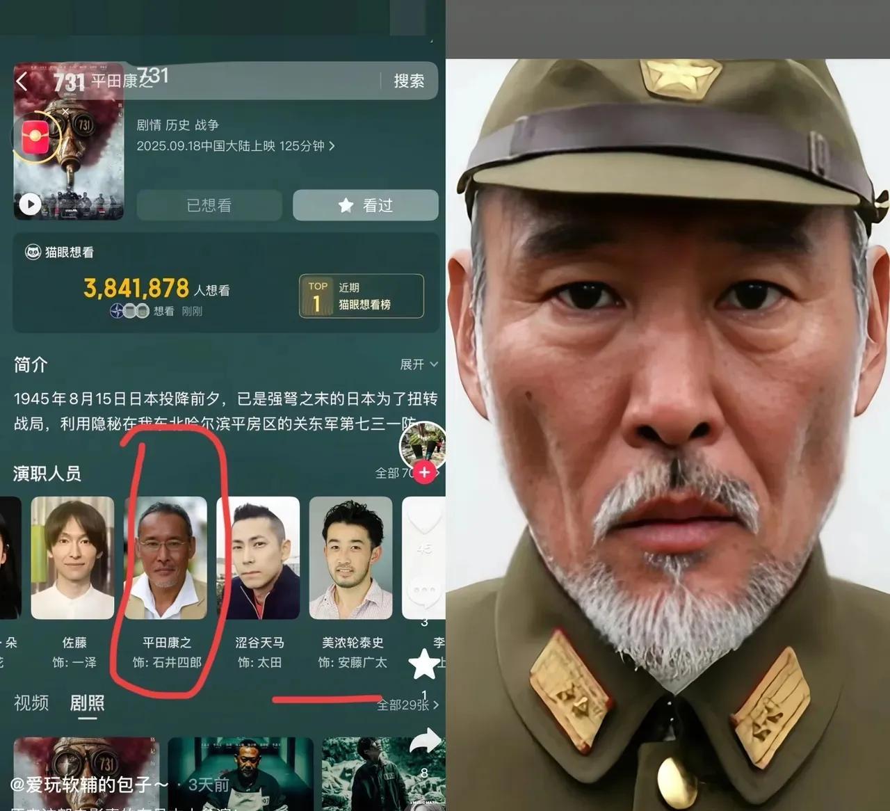 .平田康之出演731部队题材,我不意外; 他作为日本演员接这个角色,也不意外。 最让我意外的是,他竟用20年时间在中国演反派赎罪。 有人说他是为了赚钱,这话听着就外行。大家想想,演这种角色,在日本国内得挨多少骂?右翼分子能放过他?前几年他去参加抗战纪念馆活动,回国就被网暴 “卖国”,广告代言掉了一半。 要是图钱,他大可去演些风花雪月的偶像剧,何必在这儿啃硬骨头,再说了他演石井四郎那眼神,愤怒里裹着痛苦,恨不能钻进戏里给自己两巴掌。 20 年啊!他演的每个反派,从甲午战争到南京大屠杀,全是日本侵华的黑历史。每次化妆,往脸上抹皱纹、画伤疤,不就等于一遍遍揭开自己国家的疮疤? 有次采访他说,“每次喊‘天皇万岁’都觉得喉咙发紧”,这话没点真心悔过的劲,说不出来。 右翼天天喊 “没有南京大屠杀”,他就偏在戏里把刽子手的嘴脸演活;有人说 “731 是虚构”,他就用眼神告诉你,那些实验记录上的数字,都是一条条人命。 这种用角色说话的赎罪,比一万句 “对不起” 都实在。 最难得的是他这份清醒,他知道自己一个人改变不了什么,但就这么不声不响地演下去。中国观众骂他演的角色坏,他反而高兴。 这种把自己当历史注脚的觉悟,多少所谓的 “日本精英” 都比不了。 小编不捧杀谁,但也别瞎揣测,平田康之用 20 年演反派,本质上是在替那些装睡的同胞,给历史磕个头。这种自我惩罚式的坚持,至少证明:在日本,还有人没忘了过去,还有人敢直面血债。比起那些忙着给战犯招魂的,他这背影,算得上是条汉子。 大家怎么看?
