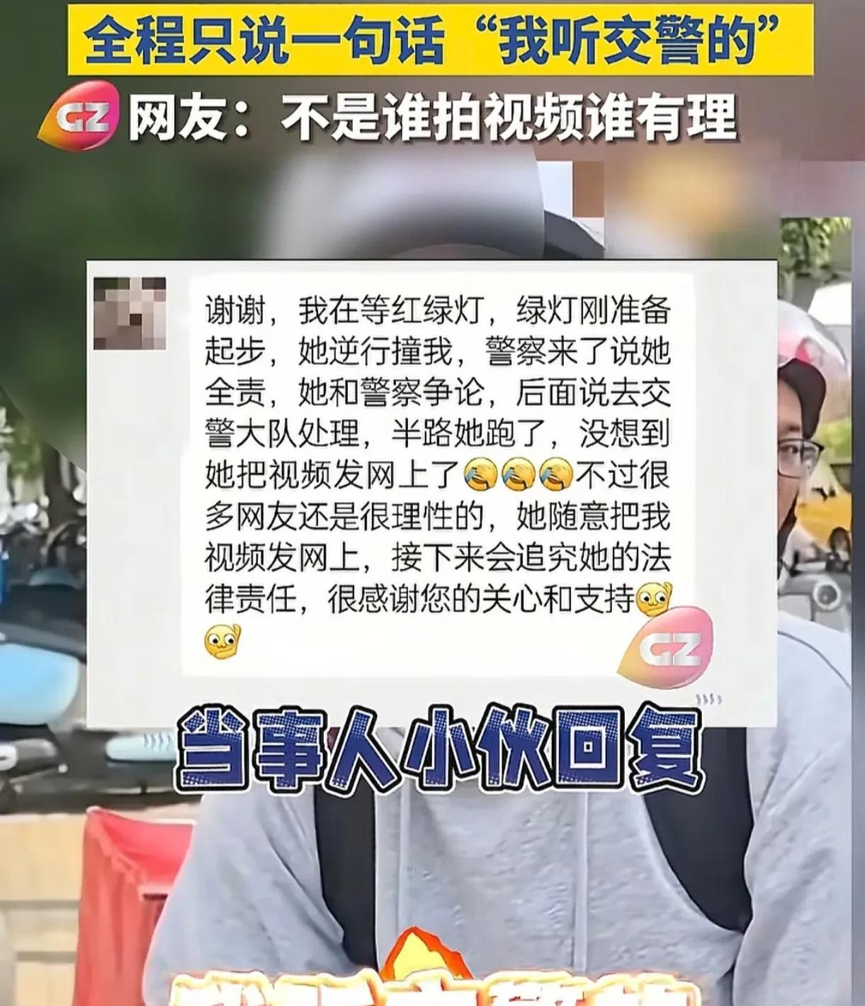 女子骑车与男孩相撞这事,抛开事实不说,她凭什么会以为视频发出去,网友会帮她鸣不平的。 我认为这是一种“惯性思维”了,看过视频都知道,她很自然的把过错推给男孩,明明自己不占理,还反问男孩“你撞了我,你还有理是吧!” 这话术下套实在高明! 我们以后遇到这种事,就应该学习男孩的心态,遇事不要慌,一切等交警来了再说,不是你说对,或是我说对就是对的,只有交警说了才算。 这事我认为一定要给女子一记重罚,才能让她长记性,她连交警过来开定责书都不服,还当场吵了起来,见交警说要回大队处理就怕了,半路偷跑证明心虚了。#头号创作者激励计划#