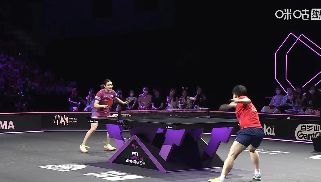 女单焦点之战, 也是大家盼望已久的比赛。 毕竟两人出次交手, 第一局莎莎摸索适应