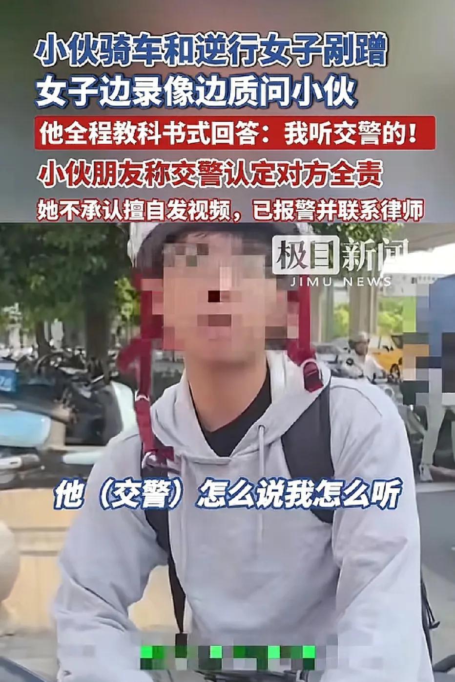 江苏常州,女子骑电车逆行在路上,跟迎面行驶的男子发生碰撞,女子不道歉,却直接掏出手机录视频,不断质问男子,说他撞人的,试图挖坑带节奏让男子承认错误。谁知,小伙子全程冷静,一直重复说我等交警来。完全不被女子所误导。交警认定女子全责。让她去大队处理,女子半路直接跑了,事后她擅自把视频发到网上,又不承认自己发的,还报警并联系律师准备追责。 8 月 9 日,极目新闻报道了一起发生在江苏常州的交通事故及后续闹剧。 一名女子逆行骑电动车,与迎面正常行驶的男子发生碰撞。 事故发生后,女子不仅没有认识到自己的错误,反而掏出手机对着男子录视频,不断质问男子:是他撞人还揍人吗? 男子无辜举起双手表示:我听交警的。 但女子不依不饶,盛气凌人地逼问:那你说这句话是怎么意思呢? 男子哪怕面对女子的拍照录像,他不慌不忙地又重复:我听交警的,交警怎么处理我怎么处理。 女子看男子没有被吓到,她有些气急败坏,欲盖弥彰地说:我就想不明白了,你这人是怎么活到现在的。你撞了人,你还觉得没关系是吗? 可是男子就如老衲坐定一般,任凭女子如何狐假虎威,他全程气定神闲地表示:我听交警的。 而女子这边越来越崩溃了,她声音变得越来越尖锐:你这个人真有意思,你撞人了还理所当然了是吗,你可真有意思呀。 女子试图挖坑带节奏让男子承认错误,进而达到讹诈的目的。但她无论怎么攻击,男子的表现让她很抓狂。 男子全程保持冷静,面对女子的连环诘问、人身攻击等,他始终不卑不亢,一直重复说“我等交警来”,完全不被女子所误导。 最后,交警到达现场后,经过勘查和了解情况,当场判定女子因逆行负事故全责。 女子对这一结果不服,声称要去交警大队理论。但在前往交警大队的半路上,女子却偷偷溜走了。 之后,她又擅自将经过恶意剪辑的视频发到网上,试图颠倒黑白,误导公众,让小伙陷入舆论的漩涡。 更过分的是,她还报警并联系律师,准备倒打一耙追责小伙子。 目前,小伙子已报警,并准备通过法律途径追究女子的侵权责任。 此事曝光后,很多人纷纷指责女子本来不合理也违法,还一副她有理的样子,她逆行、逃逸、扭曲事实、发网上污蔑。没有理真是寸步难行。她哪里来的勇气的。 那么从法律角度看,该如何认定这件事呢? 《道路交通安全法》第35条规定:机动车、非机动车实行右侧通行。 女子逆行骑电动车是违反交通规则的行为,属于违法行为。 《民法典》第1024条规定:民事主体享有名誉权。任何组织或者个人不得以侮辱、诽谤等方式侵害他人的名誉权。 女子试图通过质问和威胁的方式让男子承认错误,这种行为构成对男子的名誉侵权。 《治安管理处罚法》第25条规定:有下列行为之一的,处五日以上十日以下拘留,可以并处五百元以下罚款;情节较轻的,处五日以下拘留或者五百元以下罚款:(一)散布谣言,谎报险情、疫情、警情或者以其他方法故意扰乱公共秩序的。 女子擅自将经过恶意剪辑的视频发到网上,试图颠倒黑白,误导公众。这种行为构成扰乱公共秩序的行为。 《治安管理处罚法》第60条:有下列行为之一的,处五日以上十日以下拘留,并处二百元以上五百元以下罚款;情节较重的,处十日以上十五日以下拘留,并处五百元以上一千元以下罚款:(二)伪造、隐匿、毁灭证据或者提供虚假证言、谎报案情,影响行政执法机关依法办案的。 女子报警并联系律师准备追责,这种行为构成虚假报警。 《民法典》第1019条规定:任何组织或者个人不得以丑化、污损,或者利用信息技术手段伪造等方式侵害他人的肖像权。未经肖像权人同意,不得制作、使用、公开肖像权人的肖像。 本案中,女子未经男子同意,擅自拍摄并发布男子的视频,符合肖像权侵权的构成要件。 《民法典》第995条规定:人格权受到侵害的,受害人有权依照本法和其他法律的规定请求行为人承担民事责任。受害人的停止侵害、排除妨碍、消除危险、消除影响、恢复名誉、赔礼道歉请求权,不适用诉讼时效的规定。 男子有权要求女子停止侵害、消除影响、恢复名誉、赔礼道歉,并可要求赔偿损失。 对此,你怎么看? #头号创作者激励计划#