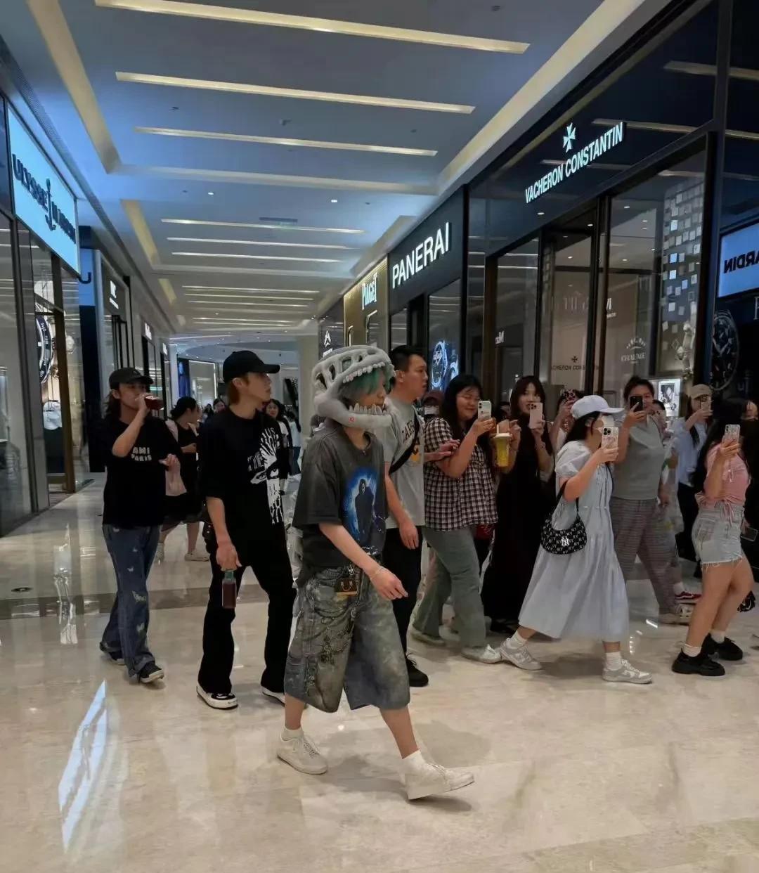 看来鹿晗自己心里还把自己当个大男孩,松弛顶着可爱恐龙帽子,直接把商场变秀场, 一