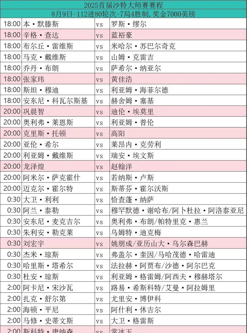斯诺克沙特大师赛正式开战附详细出战,中国军团29人首日5胜5负!
