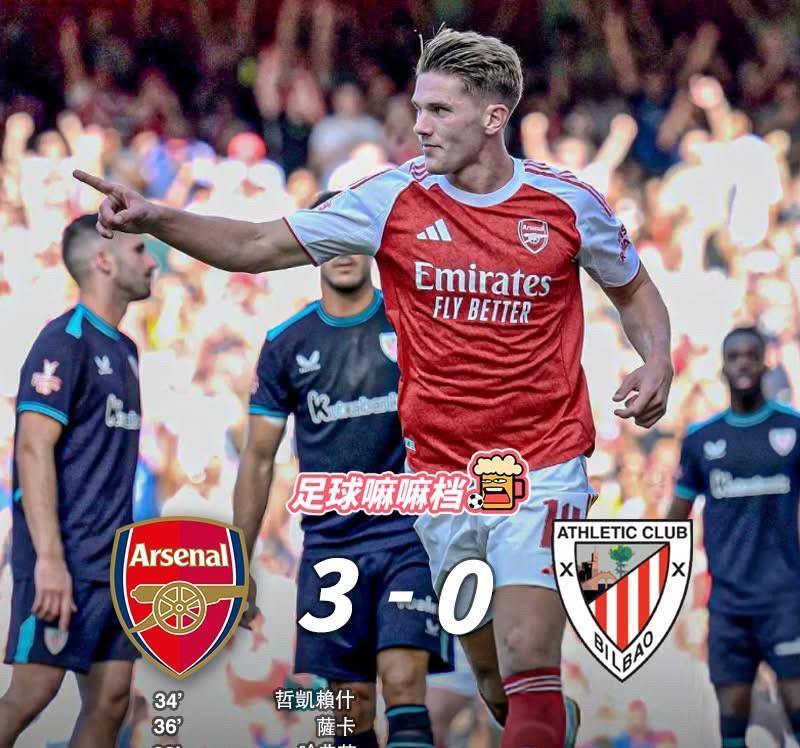 我感觉一切都回来了! ! !哲凯赖什收获处子进球,萨卡传射建功,哈弗茨替补登场把握住单刀机会锁定胜局! 阿森纳3比0完胜毕巴,夺得酋场杯冠军,也是赛季第一冠! 别的先不说,先赞新援苏比门迪,真的是高级货。 这位西班牙中场拥有出色的拦截能力,此役多次完成关键抢断,然后大局观也非常棒,传球功力非常优秀,哲凯赖什的处子进球,正是来自苏比门迪的妙传! 第二个进球则是经典的阿森纳式行云流水破门,马丁内利虽然贡献助攻,但全场比赛的表现,应该还是全队最差,版主真的反而更希望看到马杜埃凯踢左边锋,这样也能刺激一下小马丁吧。 哈弗茨真的感觉更强壮了,如果上赛季,这样的半单刀机会,版主觉得他一定打不进,没想到在防守球员的干扰下还能完成一脚高质量的劲射! 新赛季,阿尔特塔要不要尝试442阵型啊?让哈弗茨和哲凯赖什搭档双前锋啊!或许可行?哈哈哈!