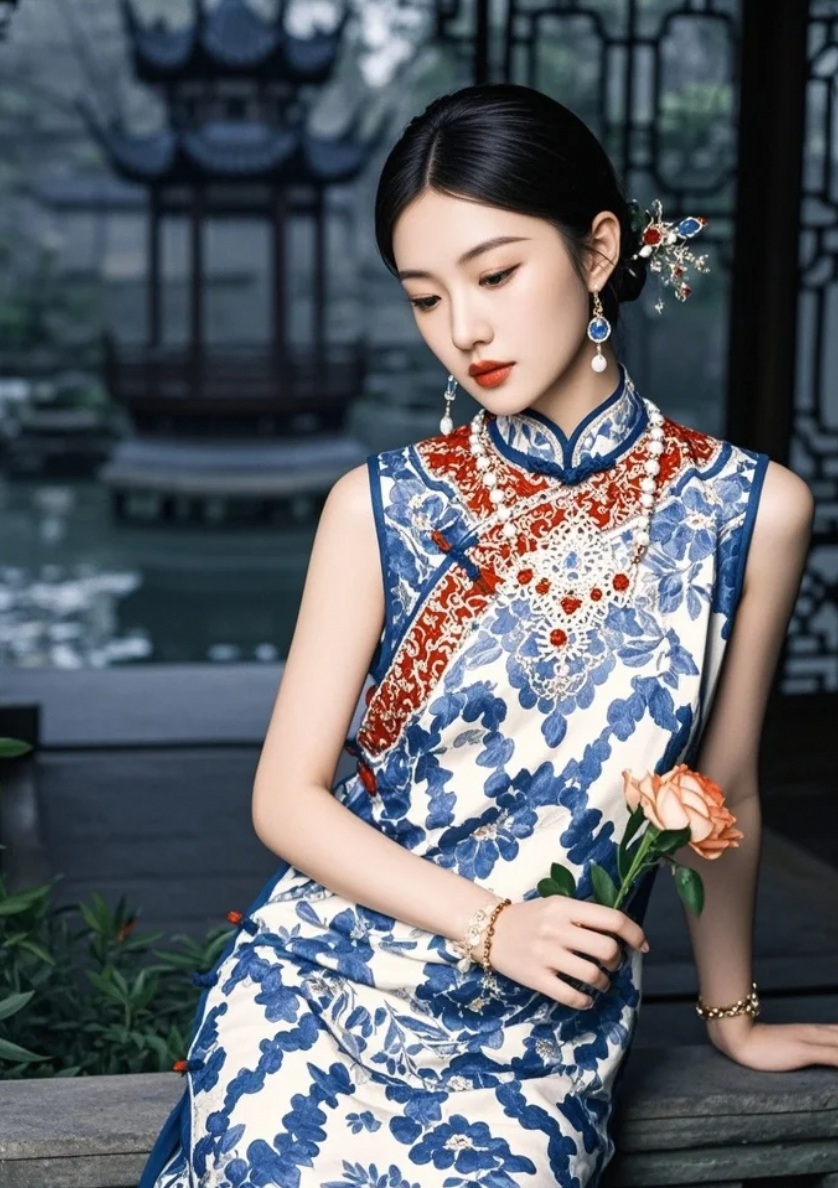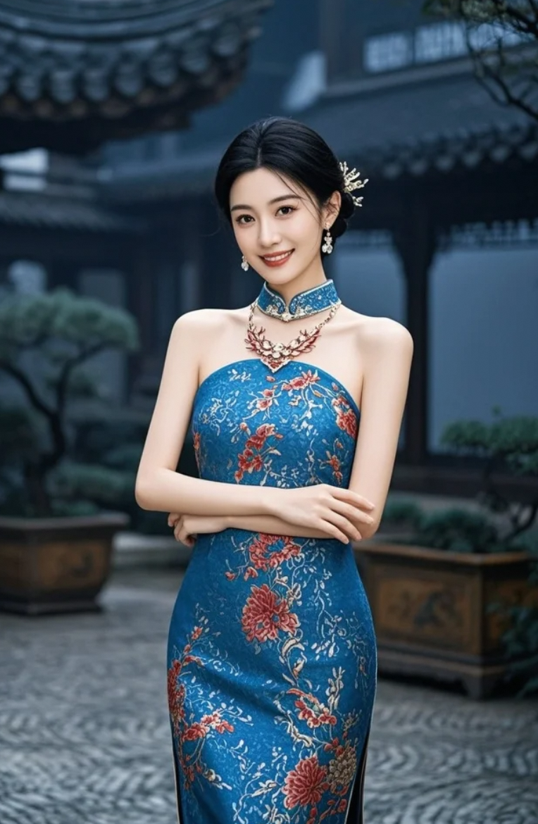 庭院深深,蓝裙曳地,她一笑,仿佛整个江南都安静了
