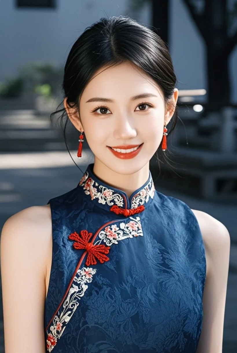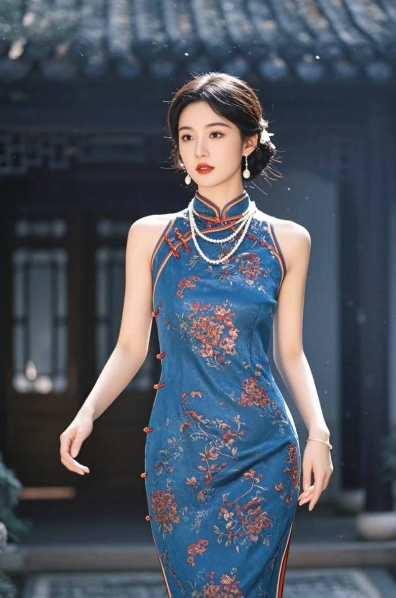 蓝如静水,眸若星辰,这组庭院旗袍写真,每一张都值得收藏