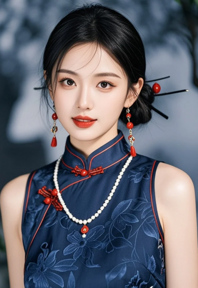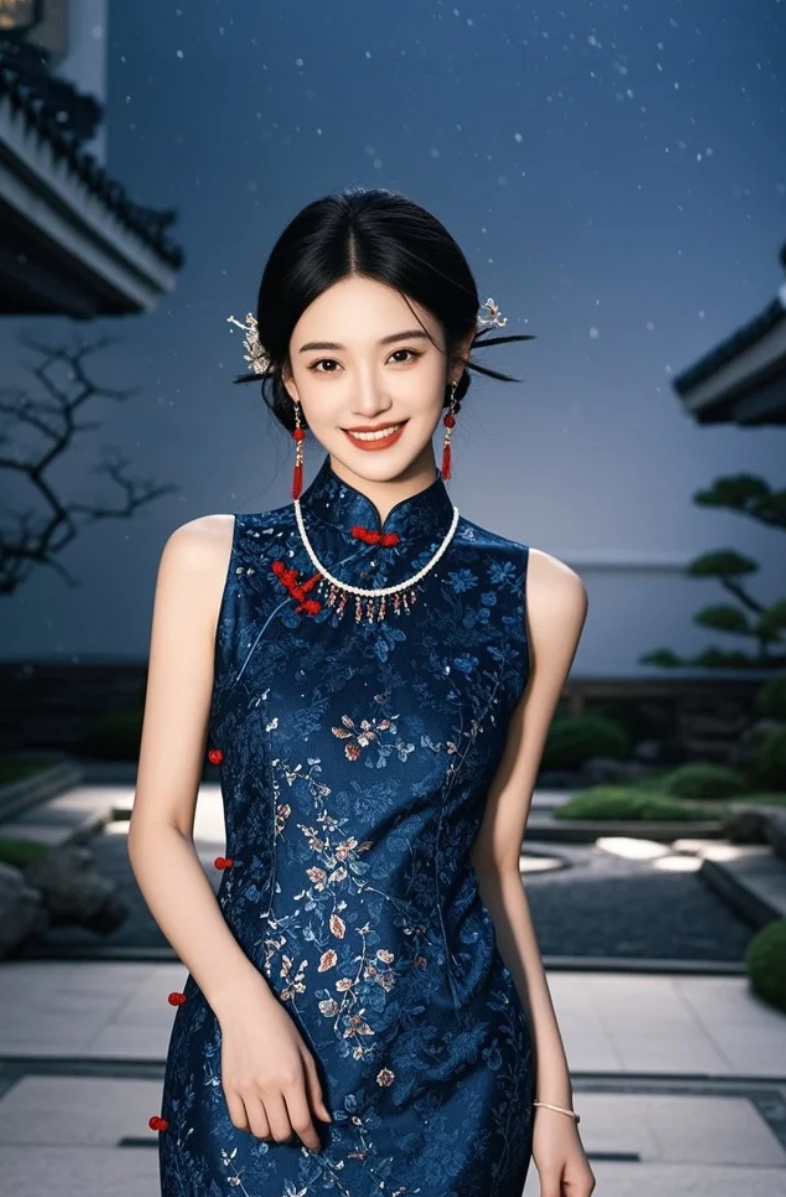 蓝得深邃,美得克制|一位现代女性的旗袍美学宣言