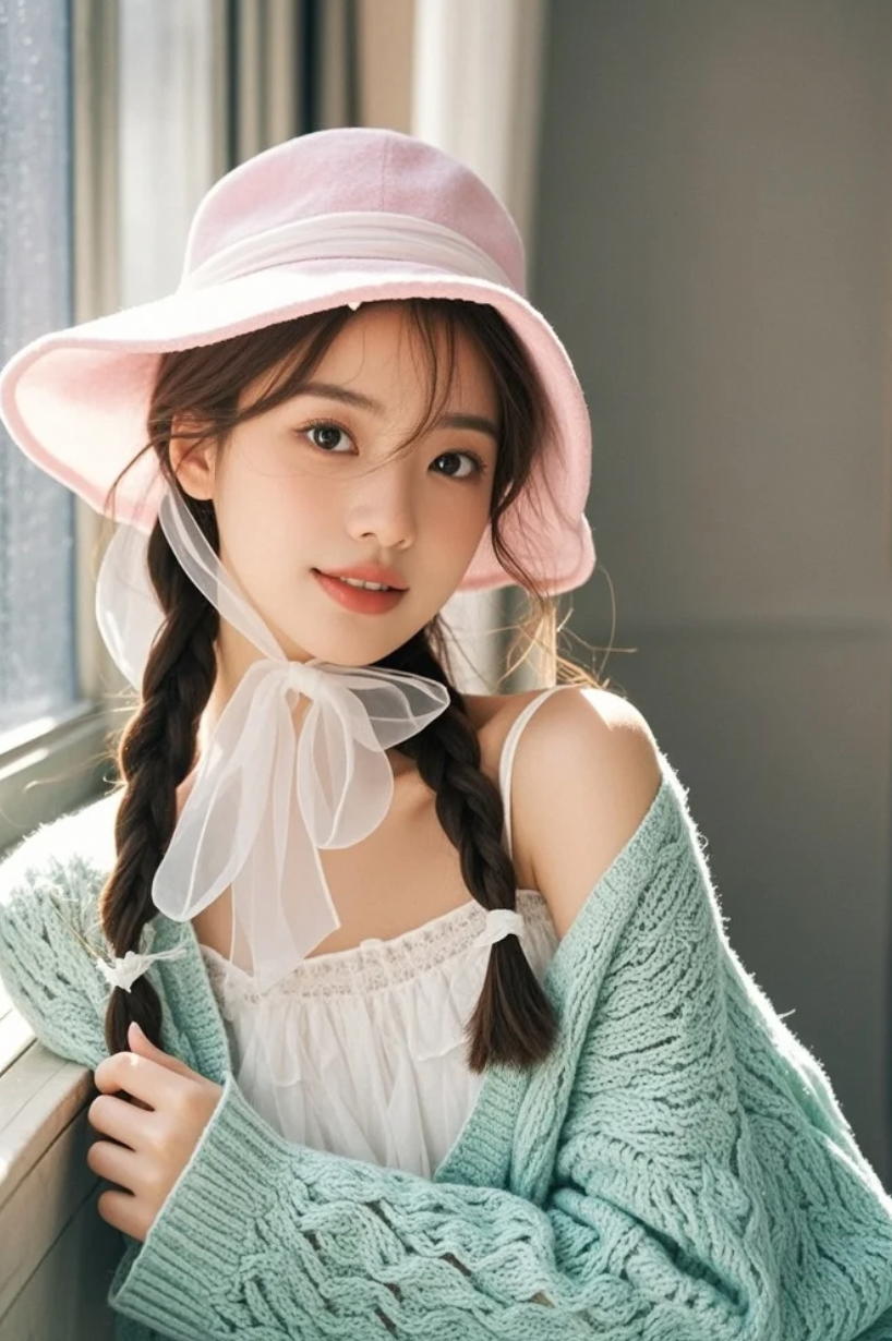麻花辫+丝带尾梢,她靠在窗边的样子,像极了青春电影的开场