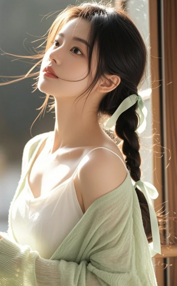 光落在脸颊上,她安静坐着,却美得让人心跳漏拍