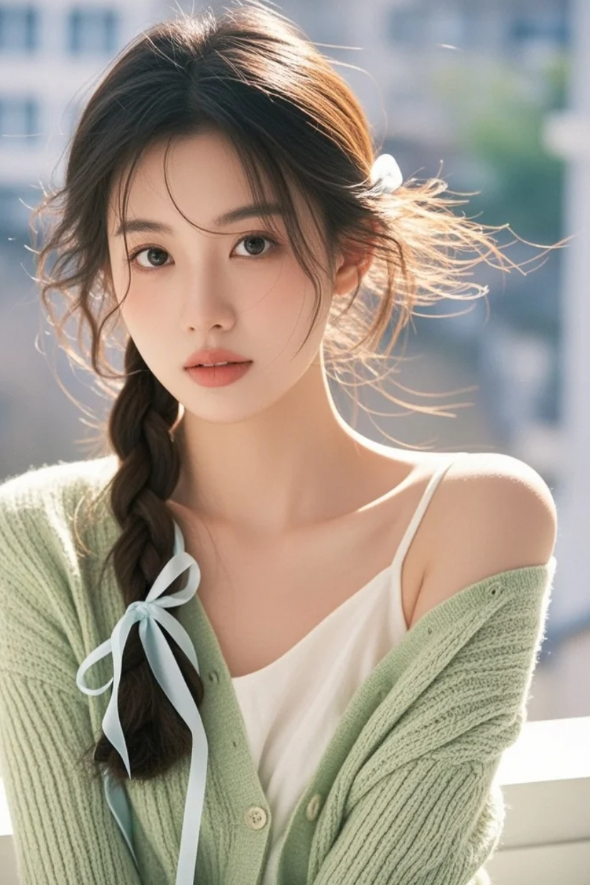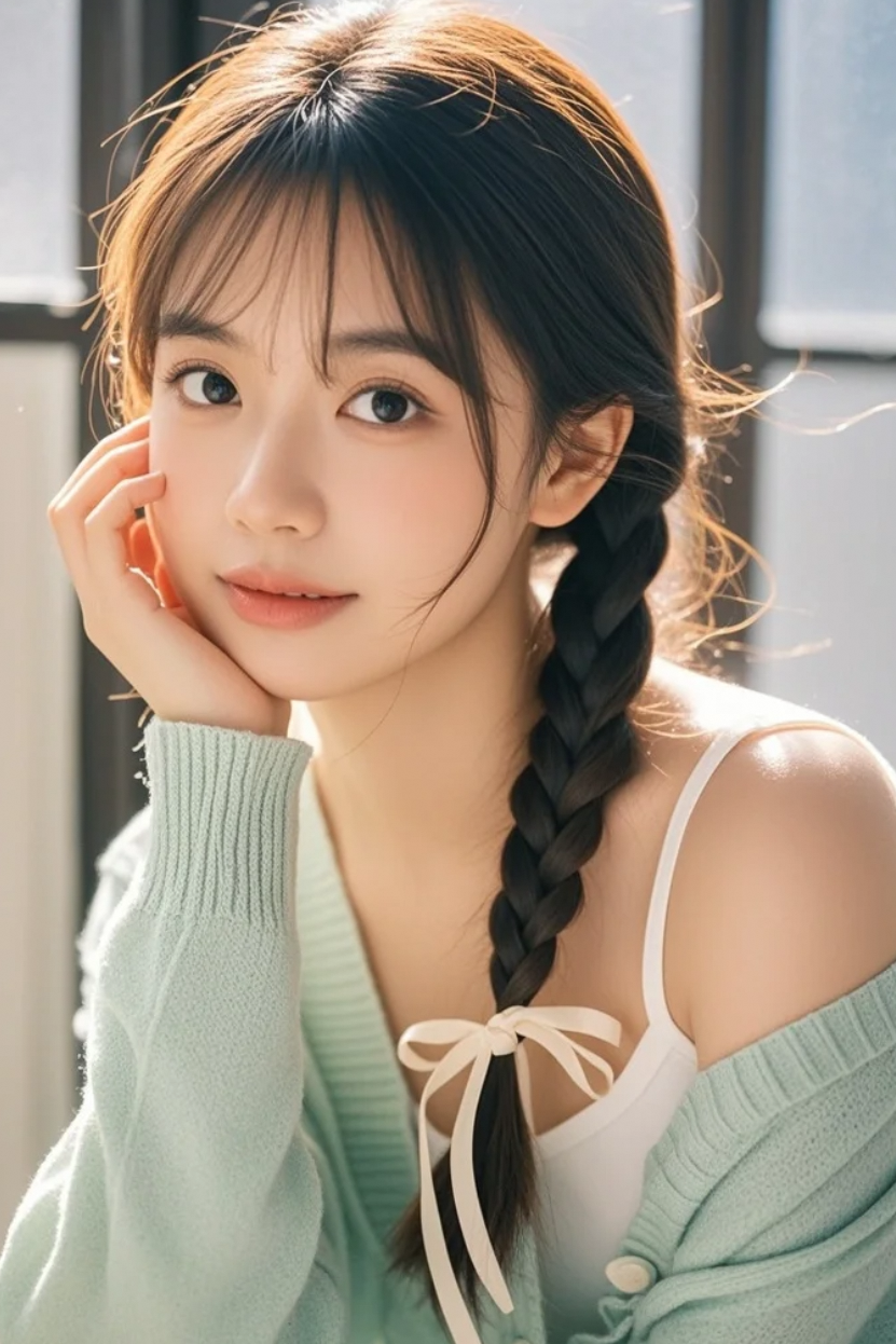 当清晨阳光遇上麻花辫少女,连空气都变得柔软了