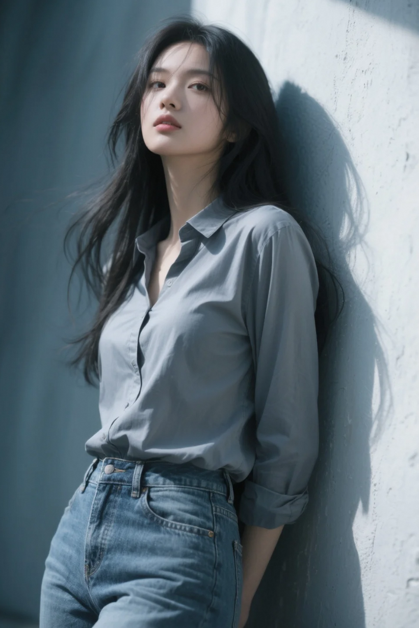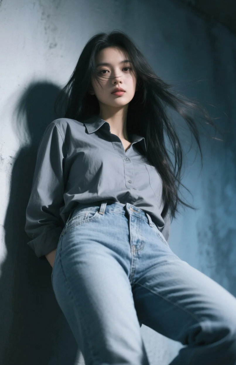 从膝盖仰拍到发梢飞扬,这一镜,把高级脸拍出了电影级压迫感