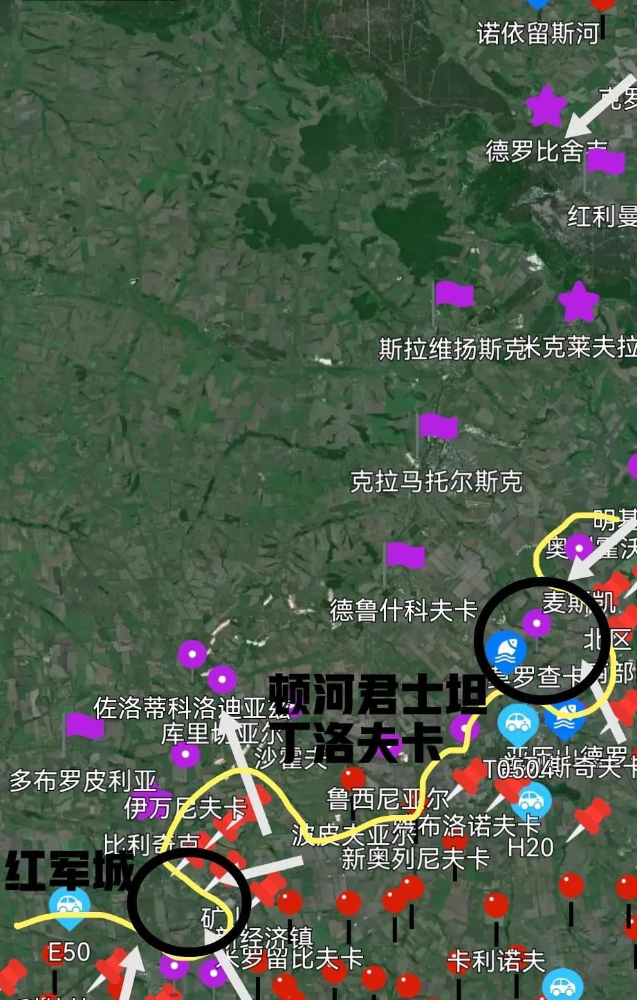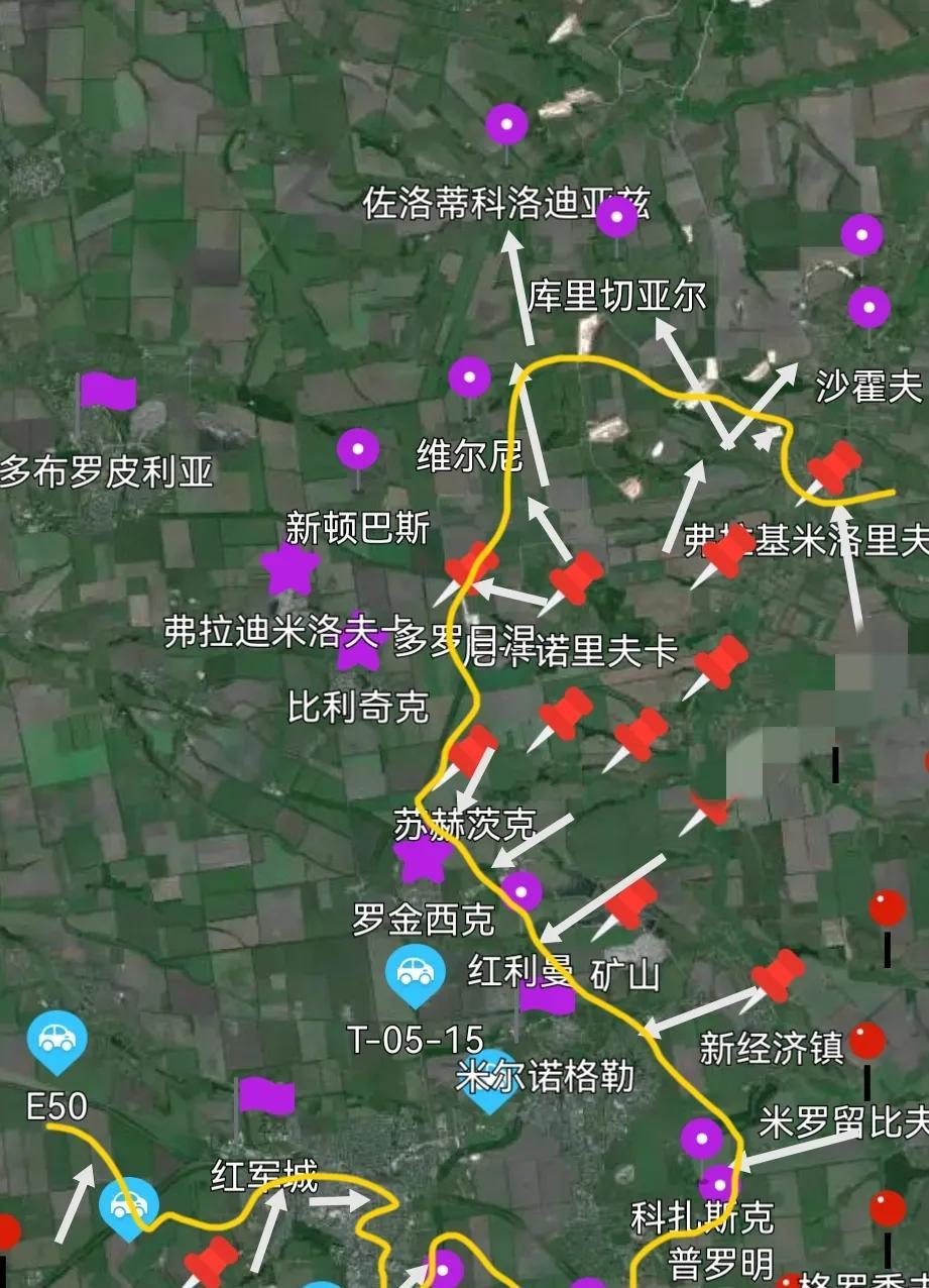 俄军再次突破!在红军城以北,俄军出乎意料大举突进,至少侦察分队突破10多公里,已经摸到了佐洛蒂科洛迪亚兹。附近的维尔尼、库里切亚尔、弗拉基米洛里夫卡,到处被俄军部队打进去了。其实这些战前的百人村落,本身也根本也顶不住。 俄军的主要意图,是切断T0514和T0515公路,当然更重要的是,创建对多布罗皮利亚的进攻条件。附近不仅是村镇,重要的几个矿山都没顶住俄军进攻。如果俄军全部占领,则不仅对一线两个要塞——红军城、顿河君士坦丁洛夫卡,构成更稳固的包围,而且已经直插德鲁什科夫卡的翼侧。如果这样打下去,至秋末俄军不仅能拿下红军城等要塞,更有望抵近德鲁什科夫卡……