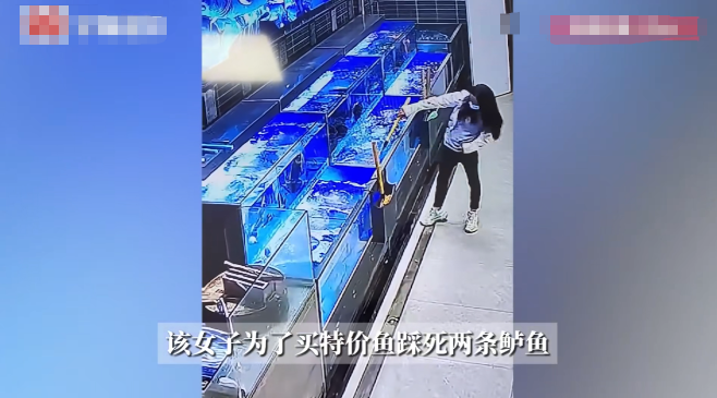 “必须严惩!”8月8日,广东佛山,一女子来到超市里后,趁工作人员不注意,竟直接用渔网捞出一条大鱼,然后偷偷踩死,随后又故技重施踩死另一条大鱼,接着她找到工作人员,询问能否把这两条“死鱼”当特价鱼卖,被工作人员当场拒绝!