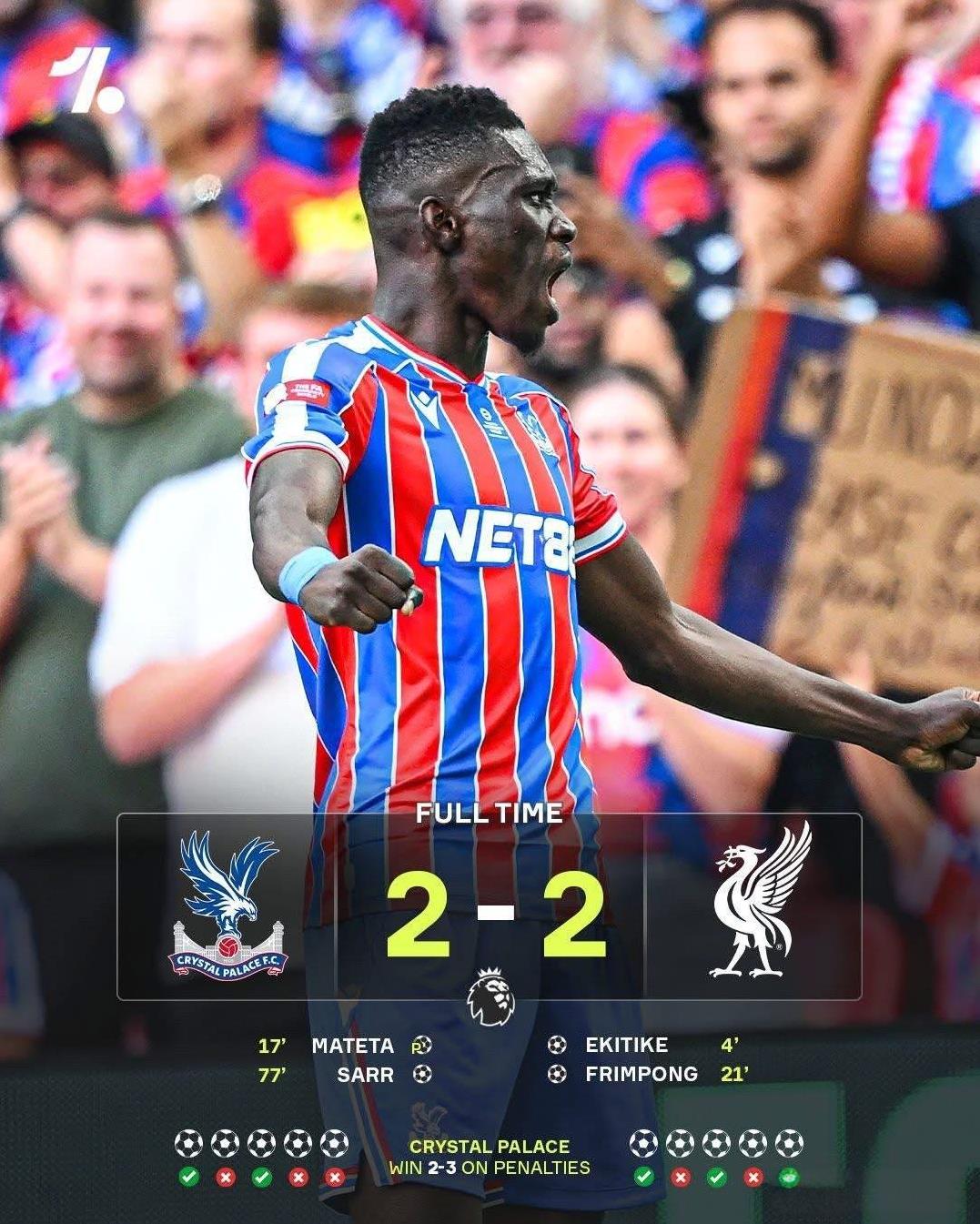 利物浦踢了一场假球,把一整个夏天的转会费都赚回来了,哈哈! 埃基蒂克开场的贴地斩技惊四座,弗林蓬的似传似射有点运气成分但绝对还是很精彩的,两位新援的表现都很出色。 维尔茨的分球和意识,真的是高级货。 全场被狂喷的加克波,没想到却罚进了点球。 下半场比赛,利物浦一点欲望也没有,最终被水晶宫扳平,然后在点球大战中输掉比赛,失去了社区盾冠军。 当然,都知道,赢得社区盾冠军会失去英超冠军,这是一个魔咒,或许这也是红军要输的原因?哈哈!