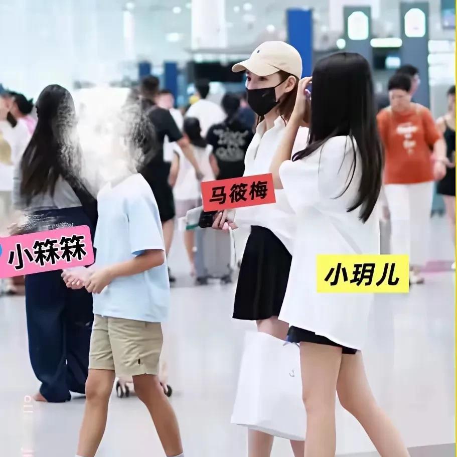 箖箖这个小皮猴儿确实是很喜欢筱梅的。 筱梅带姐弟俩出国游玩,在北京机场,筱梅或者