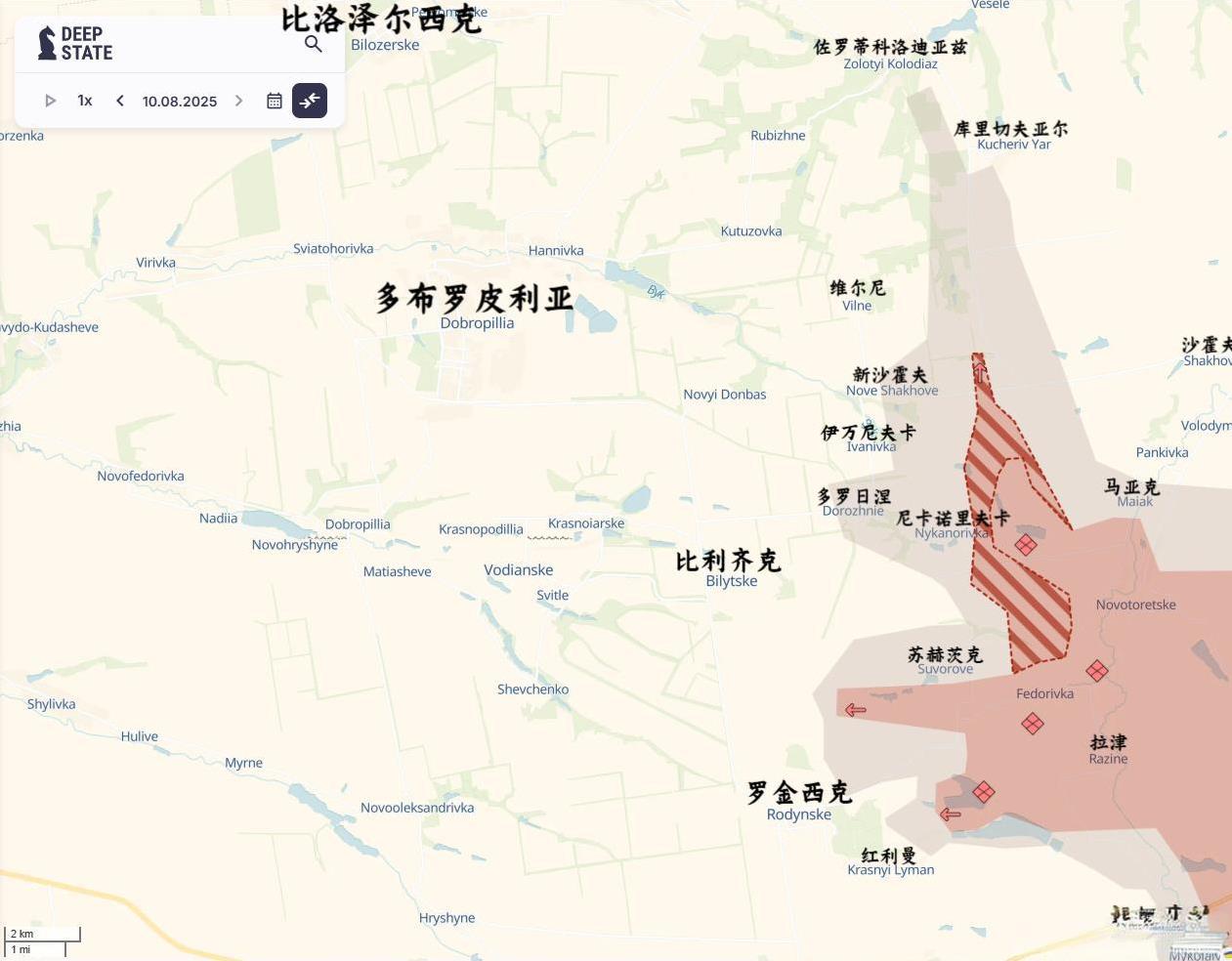 俄军侦察小组已确认一下突破乌军纵深10公里,攻至布罗皮利亚东北佐洛蒂科洛迪亚兹(Zolotyi Kolodyaz)。重点是俄军突击部队紧随其后,在深入乌克兰防线 7 公里处建立阵地。这一切都发生在不到48小时内,使其成为自2022年俄乌转向消耗战以来俄军最大、最快的突破之一。随后乌克兰半官方信源也证实了俄军的推进跟进,请注意DS的灰区基本等于俄军实控,也就是说俄军的渗透目前已经变成了推进占领。