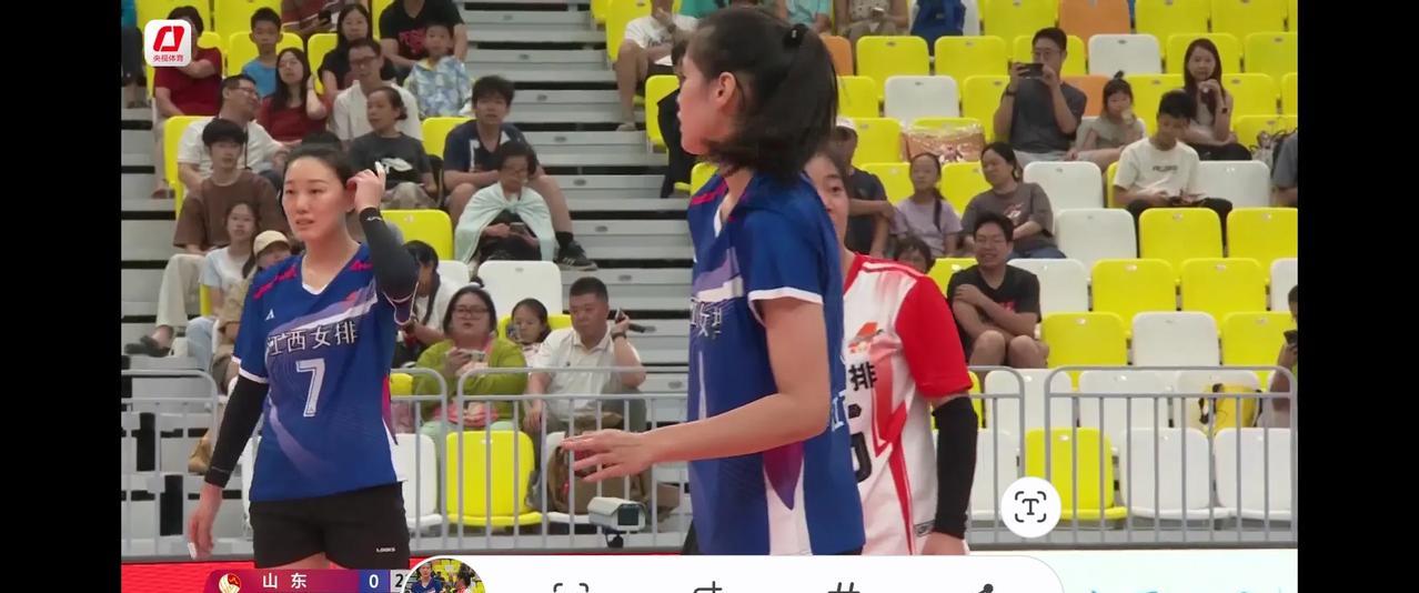 全国女排锦标赛16时同时直播两场比赛,第一局山东25-9江西,福建25-16香港。 江西队由天津名帅陈友泉任主教练,从山东队支援过来的解盛岩蔡雅倩宋立琪与山东队友隔网相对,终因实力不济大比分输掉第一局。山东队主攻车文涵郭湘玲,副攻郭慧玲国炜琳,接应孙杰,二传解盛钰,自由人宋嘉逸。山东二换三李月凝孙虹云。