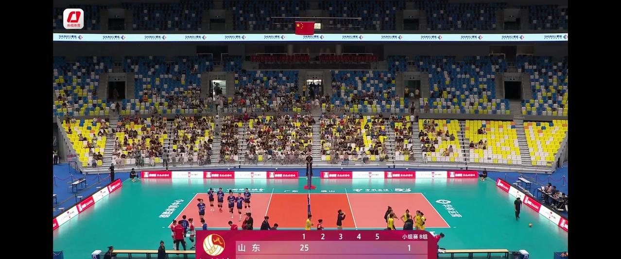 全国女排锦标赛16时同时直播两场比赛,第一局山东25-9江西,福建25-16香港
