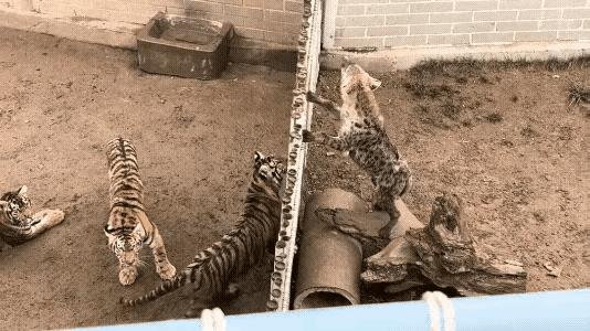 威海某野生动物园的小老虎翻墙去殴打了挑衅自己的鬣狗。 以这堵墙的厚度和高度,再过段时间可能鬣狗就没了。