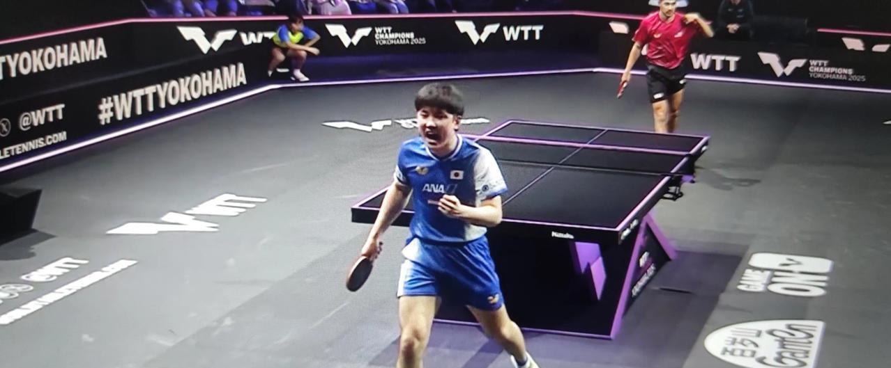 世乒联日本冠军赛男单半决赛,张本智和对阵美国选手卡纳克去.贾哈。 张本智和11:5拿下首局后,场馆出现电力故障,比赛中断了一会儿,回来后,张本智和已经大比分3:0领先。贾哈11:8扳回一局,张本智和11:8拿下第5局,大比分4:1晋级决赛。