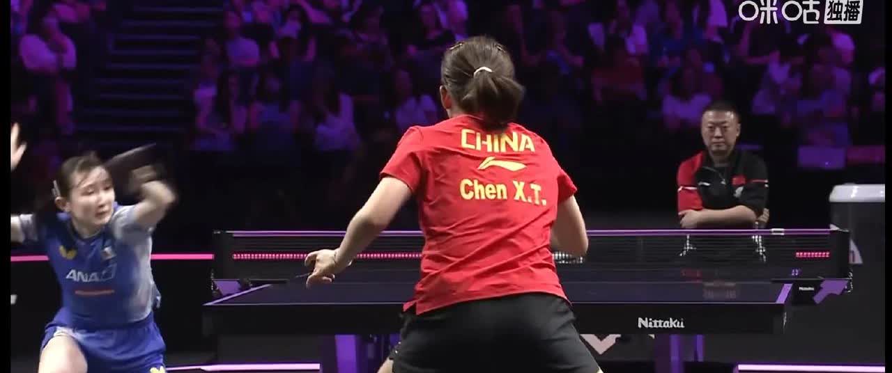 陈幸同今天进入状态有点慢,开局连续输了两局。 第三局同同11-7赢下一局,不知道能不能让二追四。 马琳看样有点着急,耐心给同同制定技战术,还不忘鼓励要坚定。 第四局比分一直焦灼,7-6早田希娜叫暂停,好像她小手臂有伤,教练帮忙按摩。 11-9同同又拿下第四局,比分2-2平。 第五局同同比分先落后,又追平反超11-7又赢下一局。 第六局同同在全场的加油声中,11-4大比分拿下。 同同太棒了,足够坚定4-2拿下本场比赛。 同同打外协不含糊,早田希娜和张本美和都能拿下。 恭喜同同赢下本场比赛,提前锁定女单冠军属于中国 图片来自网络侵权可删,