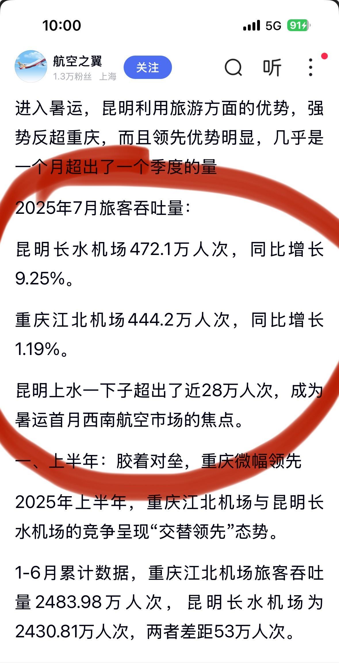 重庆东站的建成通车,可能对重庆江北机场造成了负面影响吧?今年暑假,2025年夏天,重庆江北机场被云南省昆明市长水机场反杀了! 后年,2027年渝昆高铁全线通车运营后,无论重庆江北机场还是昆明长水机场,可能都会被负面影响一段时间,也许两三年,甚至三五年。 未来三五年,重庆高铁网建设持续成网,菜园坝高铁站也要建成! 综合而言,重庆江北机场,未来几年,可能经常会被昆明长水机场反杀。 #光线摄影世界曾兰谈天说地# #头号创作者激励计划#