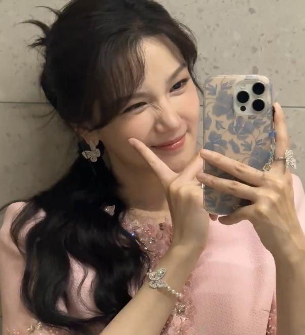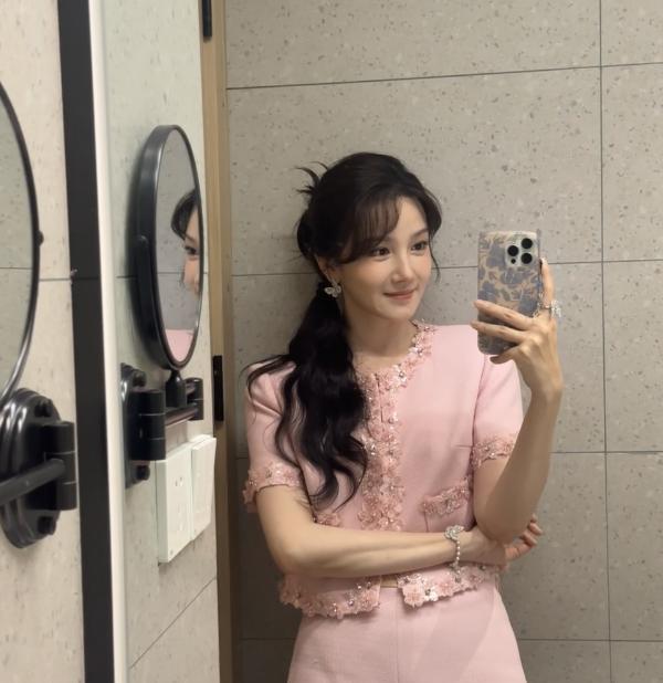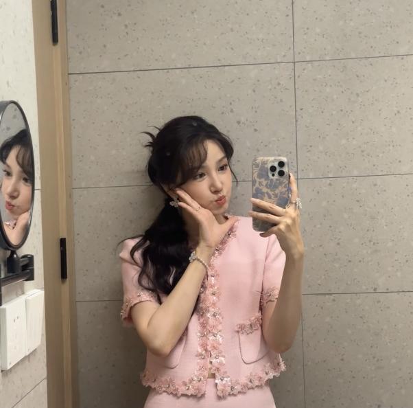 陈小纭晒新照,粉色的造型看起来有点甜