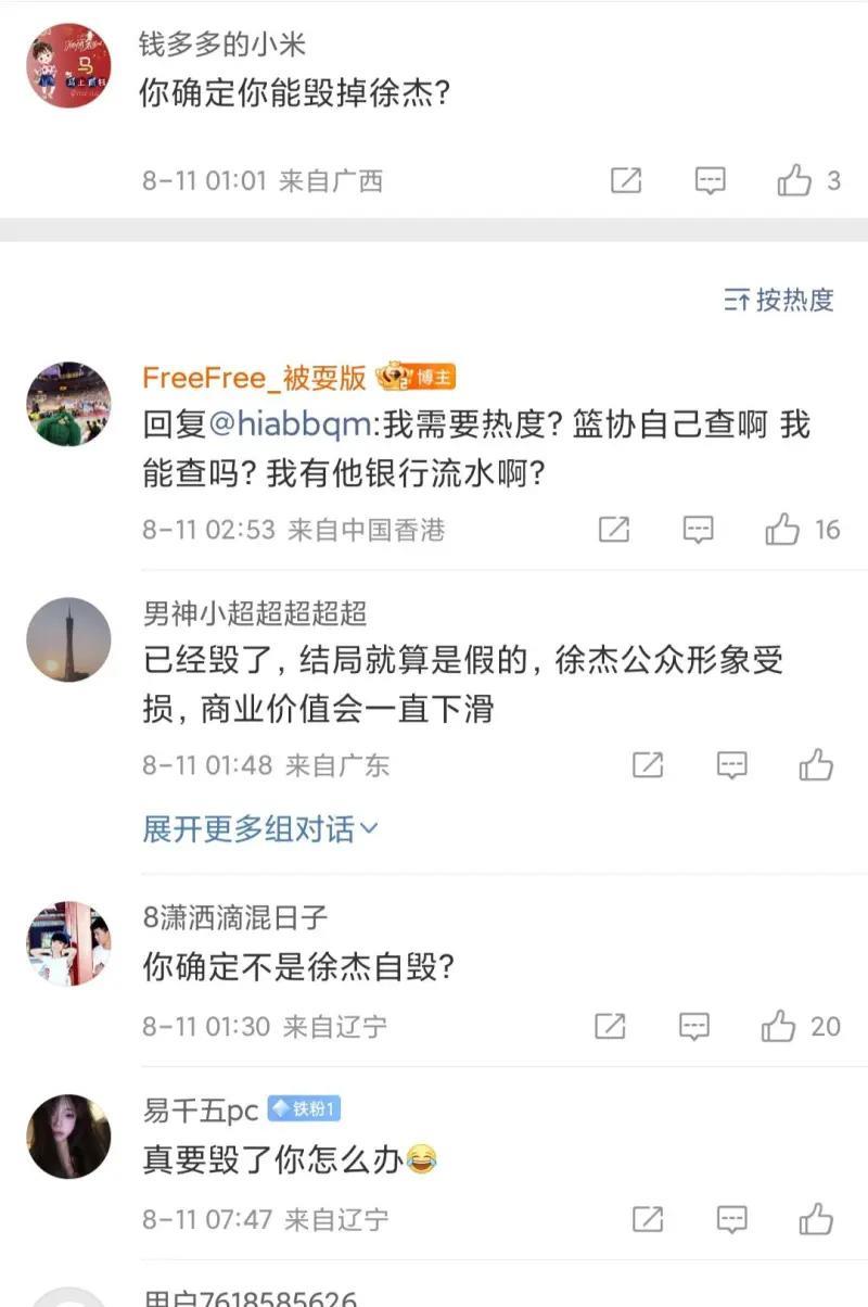 所谓的徐杰前女友账号,其实就是抠脚大汉在集体作案。当被网友质问TA有什么证据时,TA说篮协去查,TA又没有徐杰的银行流水。这可以看出TA就是纯法盲,篮协也没有资格来随便查徐杰的银行流水。 从昨天的发文来看,TA是一点证据也没有的,就凭这几张截图篮协就会理会?甚至笔者可以 大胆猜测,TA所谓的已经把证据发给篮协都根本不存在。