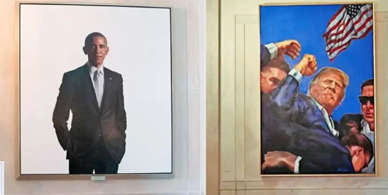 美国现任总统干了一件让人哭笑不得的事情!他把奥巴马、布什父子肖像移至白宫楼梯间。