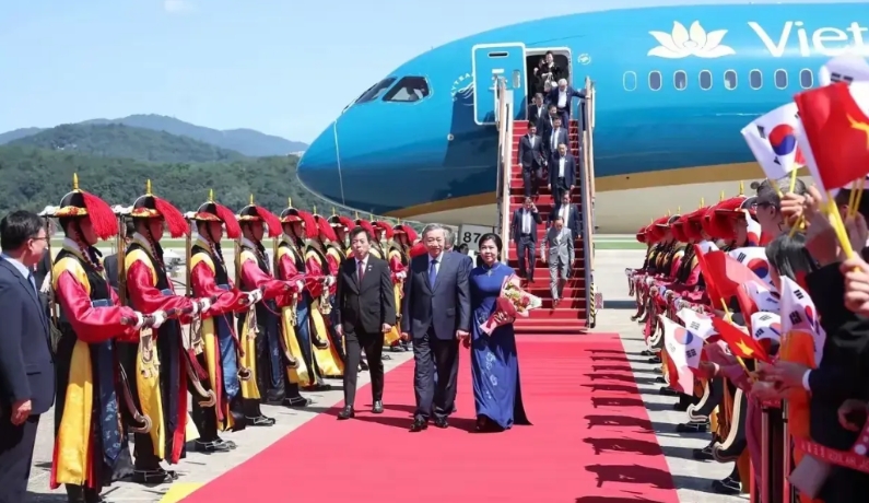 越南领导人苏林抵达韩国,开启对韩国的访问,苏林可能是韩国总统李在明上台后,第一个到访的外国元首,韩国外交部长赵显亲自接机,中规中矩。