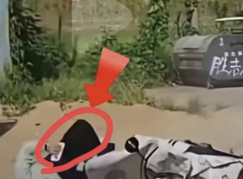 女子边看手机边骑车遇到沙子打滑摔倒,而距离她有足有5米之远,正常行驶且与她没接触