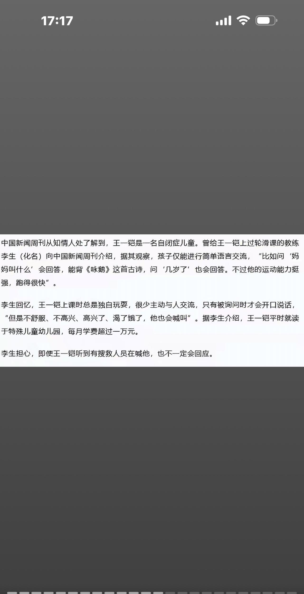 自闭症男童王一铠,今天还没消息,有人说,他跑下大马路,混入人流中也有可能。 因为