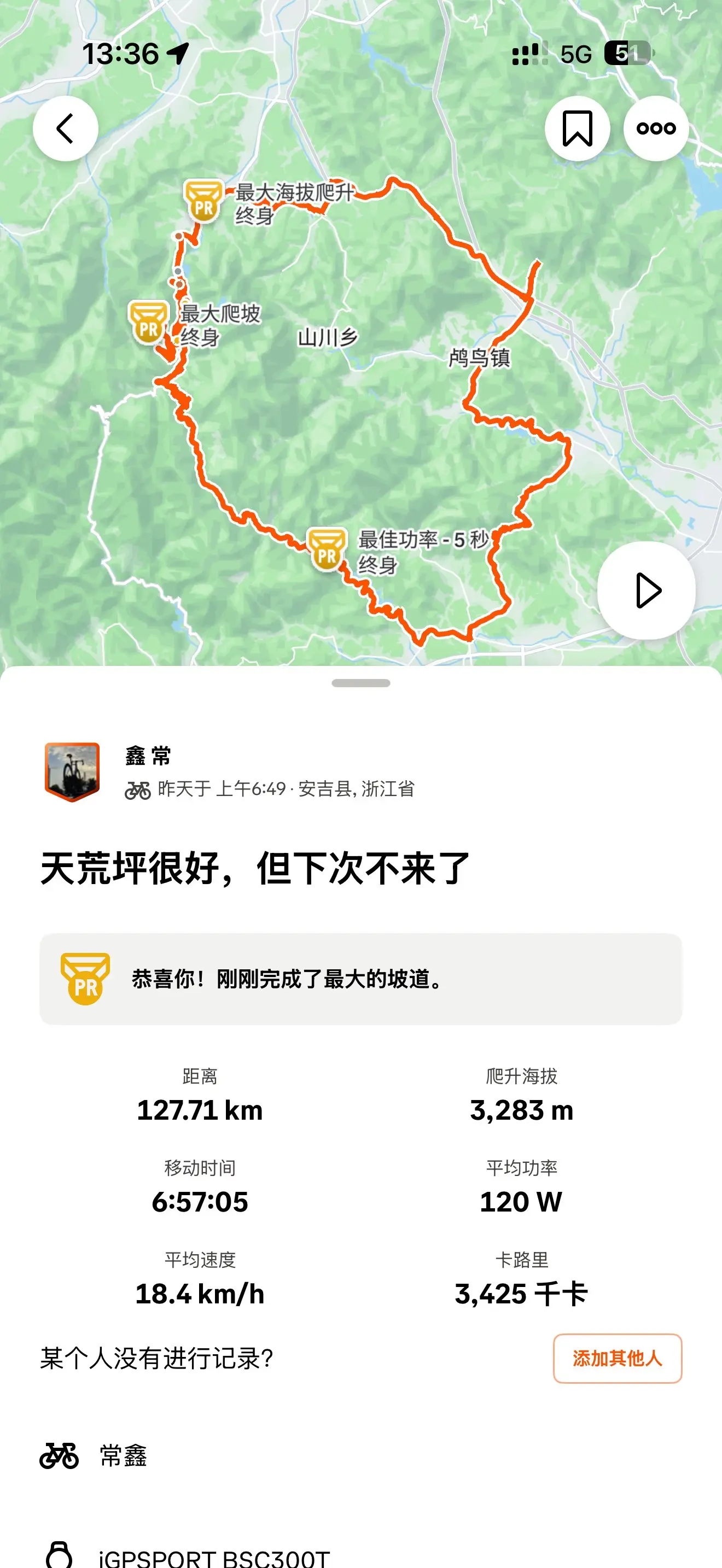 景色很美,天荒坪很好,但下次不想再爬了创纪录的3283m爬升…