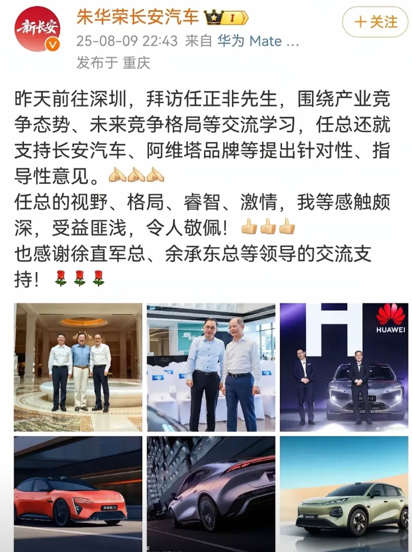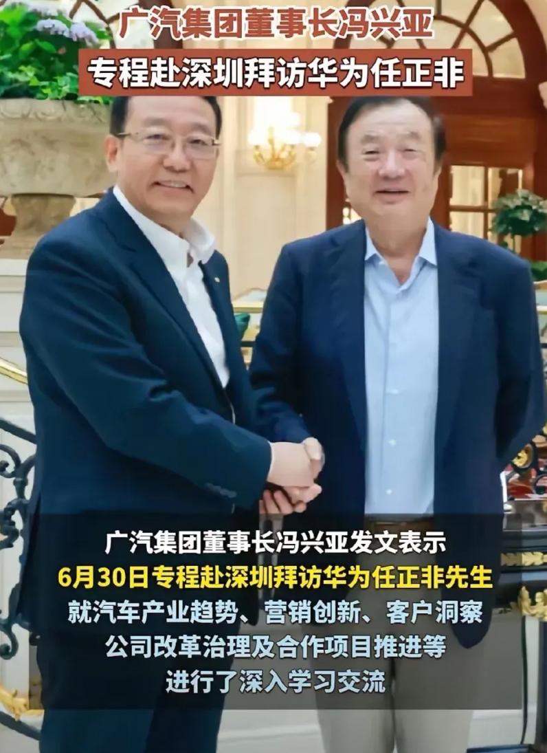 华为不造车是任正非定下的规律,最近几个造车的老板频繁拜访任正非也不知道是怎么回事。显示小鹏汽车的何小鹏过来,接着是广汽董事长冯兴亚,然后又来了长安汽车的朱华荣。谈合作不应该是找余承东吗,怎么都来找任正非,关键任正非不让造车。