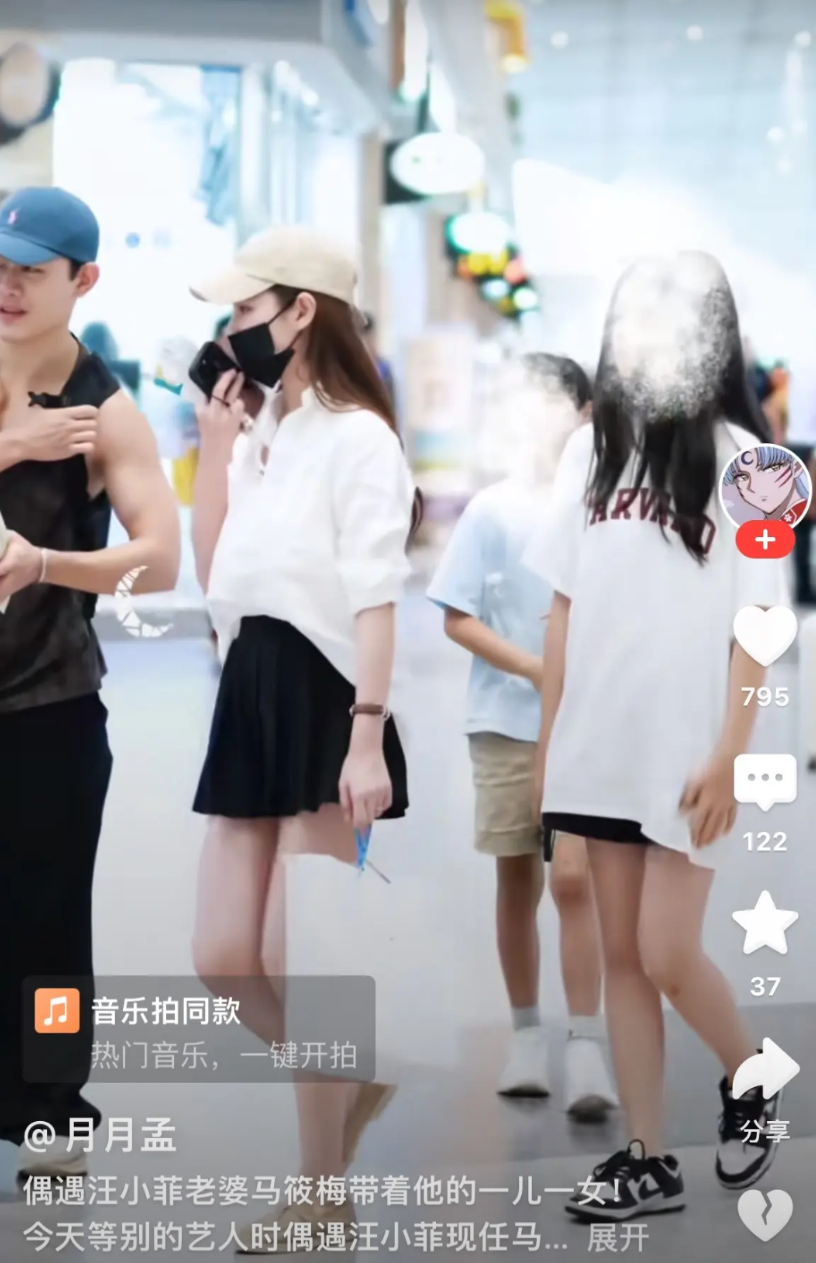 网友机场偶遇马筱梅汪小菲带着霖霖喝小玥儿出行,小玥儿已经比马筱梅高了。