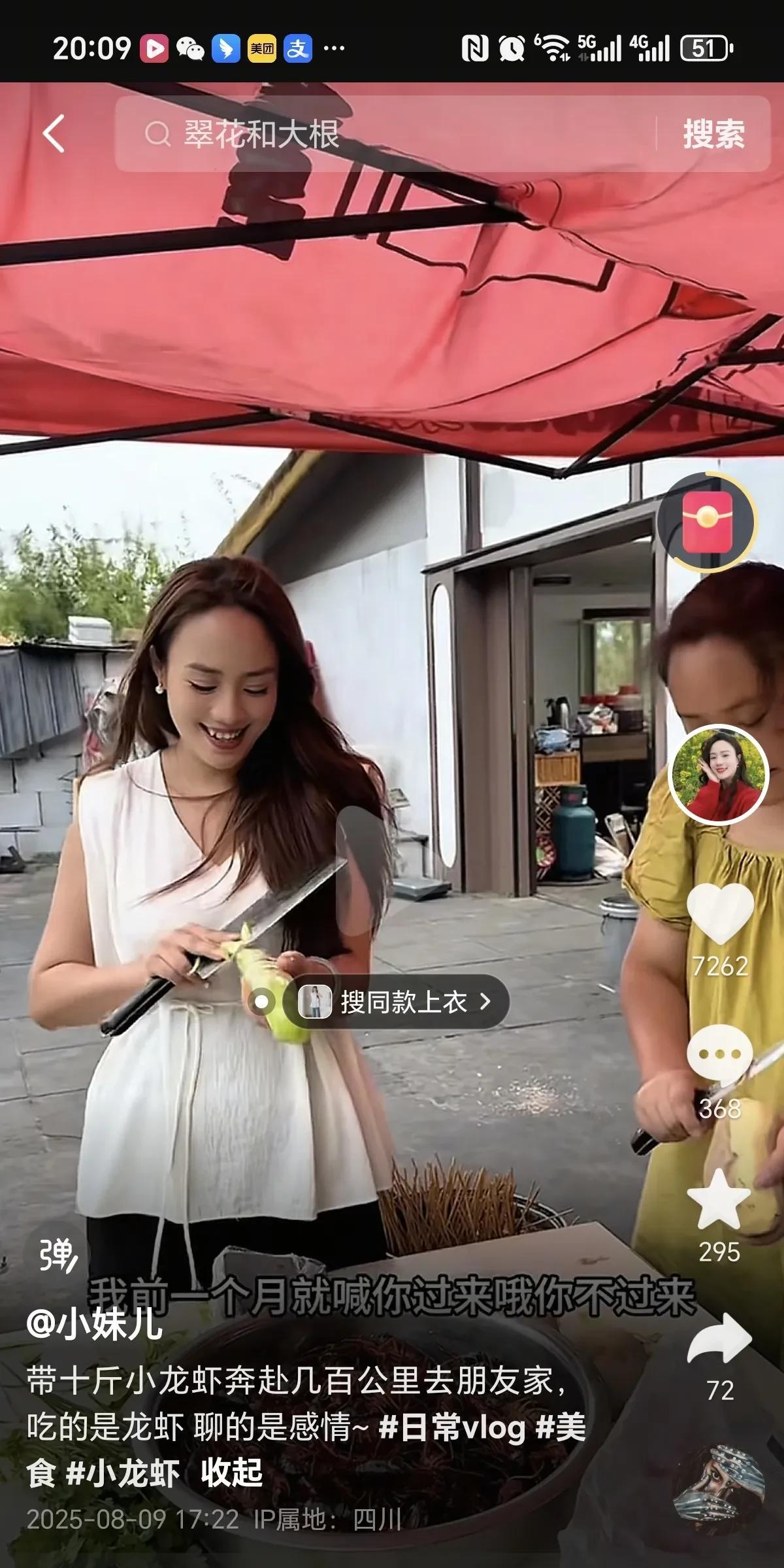谁说,川乡小妹没有朋友? 这不小妹买了10斤小龙虾, 开车几百公里, 去找朋友耍! 朋友出镜, 网友说,小妹适合找长相普通的! 太俊的朋友, 玩着玩着, 就闹别扭分开了! 离婚后,翠花也跟着离婚了, 超爸,三娘, 农村王二妹,小二娃 开始抱团取暖! 一大家人, 就这样了, 各奔东西! 接下来, 期待大根的蜕变吧! 小二娃离婚, 房子,账号都归自己了, 大根离婚, 一无所有! 差距啊!