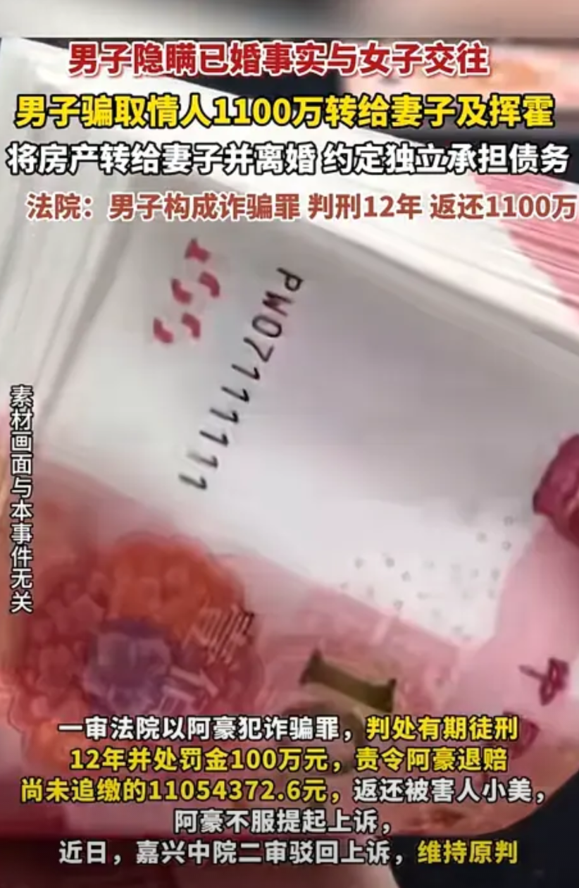 好在法院明察秋毫,通过胡某的陈述、双方的聊天记录以及多位证人的证言,法院认定李某确实刻意隐瞒已婚事实,虚构各种理由骗取钱财,并将所得款项用于挥霍,一审法院判处李某有期徒刑12年,剥夺政治权利1年,并处罚金100万元,同时责令退赔1105万余元。