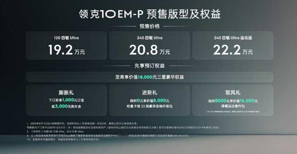 领克10EM-P全系顶配预售19.2万起领克10EM-P全系四驱索尔太顶了领克必须夸夸领克 10 EM-P 的预售操作!“早订早交付 + 不锁单可退” 这组合拳太实在了。订车不用怕后悔,就算后面有变动也能退,完全没压力。预售价 19.2 万起送三重权益,上市还有更多惊喜,“等等党” 也不吃亏。这种把决策权交给用户的做法,买车的紧张感都少了一半。