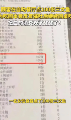 女子吃自助餐狂点100份三文鱼,为吃回本反复催吐后继续回桌吃!网友:怎么想的,一顿饭几百块钱,催吐弄伤了身体,几百块钱可治不好!