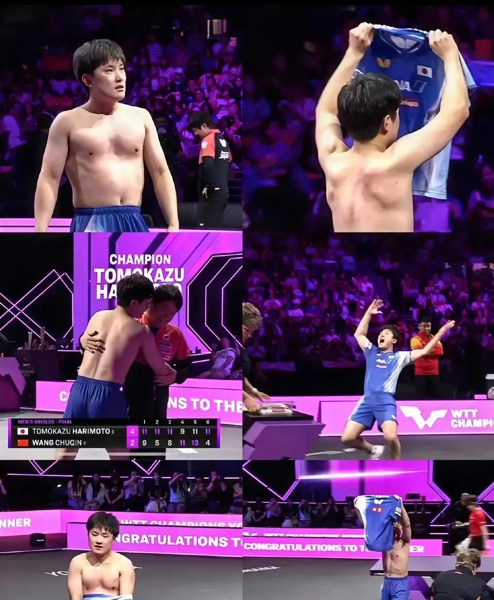 张本智和,下次别脱衣服了! 半决赛脱衣服,决赛脱衣服,既没有八块腹肌,六块都没有