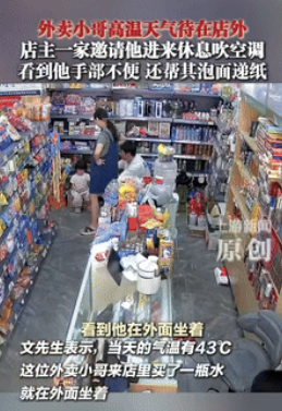 “活该她挣钱!”重庆一女子给丈夫送饭时,发现外卖小哥在超市外坐着休息,就邀请他到店内吹空调,恰好到了午饭时间,小哥买了桶泡面,结账时,女子看出他手部不便,于是主动帮小哥泡面,还给了凳子和纸巾,而小哥接下来的举动,让夫妻俩心里暖暖的! 据上游新闻8月8日消息,夫妻俩开的超市不算太大,店里每天只留一人看管就行,女子做好午饭后,就将饭菜放在保温盒里,带着女儿给丈夫送去。 但这次女子发现有名外卖员在门口,手里只有瓶水,她将这事告诉给丈夫后,对方很诧异,他记得外卖员,因为水就是在店里买的。 明明是午饭时间,送餐高峰期,外卖员却不接单,反倒在休息,可见天气的炎热,挣钱固然重要,但身体更要放在第一位,夫妻俩很心疼外卖员,于是让他到店里乘凉。 就算静下来不送餐,也抵不住高温环境,反正店里客人不多,空调给一个人吹是吹,给四个人吹也是吹,外卖员受宠若惊,他有些不好意思,看到男子在吃饭后,他花钱买了泡面。 女子看出他的窘迫,不等外卖员出声,她便主动提出给小哥泡面,经过对方同意,女子将包装打开,店内没餐桌,只能委屈外卖员在凳子上吃饭。 外卖员对夫妻俩很是感激,他填饱肚子,身体也缓过来后,就提出离开,但在走之前,为不给夫妻俩添麻烦,他主动将自己剩余的垃圾带走,至少不能让夫妻俩心寒。 对于这件事情,大家有什么看法?