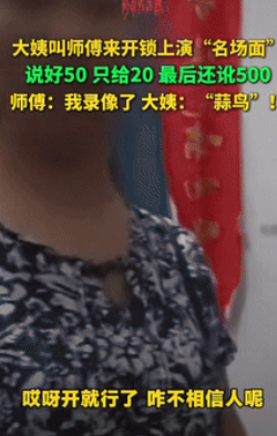 “白嫖失败了!”四川一大姨回家忘带钥匙,找了名开锁师傅,说好给50元,不料,师傅