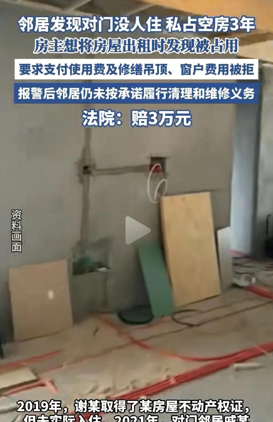 这就是贪小便宜的下场!男子3年前发现,对门邻居家房子长期空置无人居住,他为了贪点
