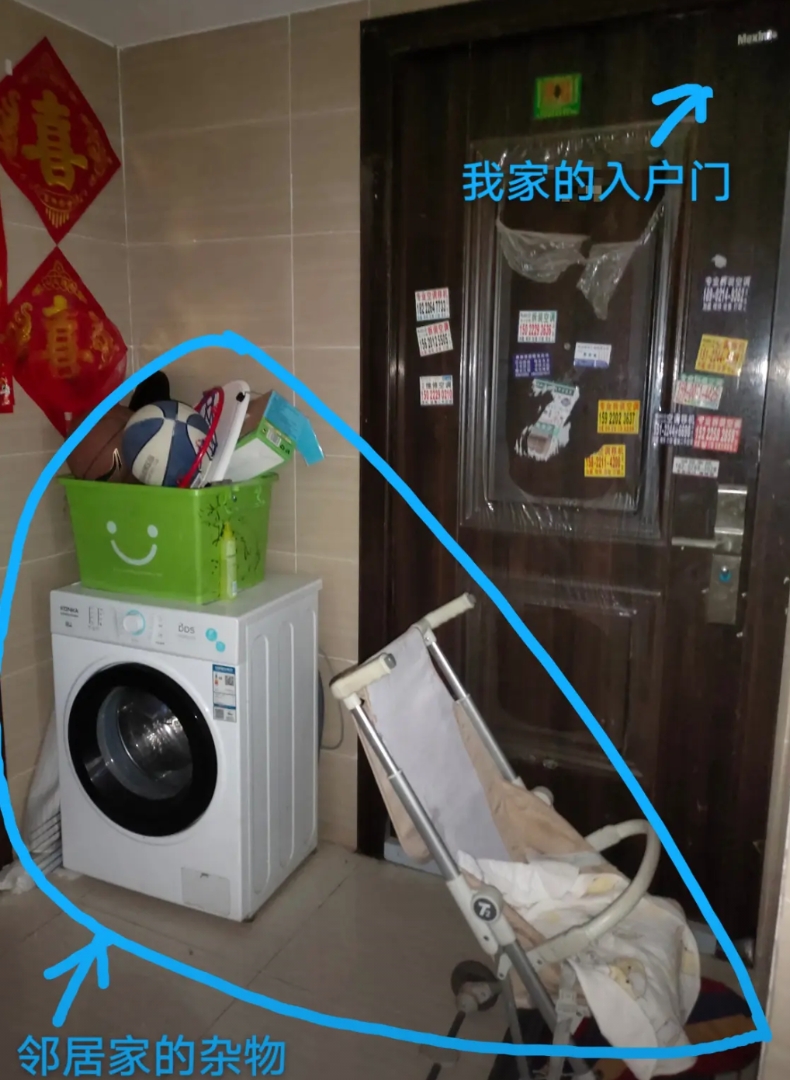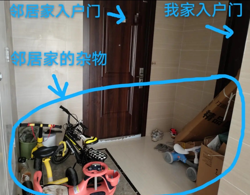 去到新房入眼就看懵了,整个电梯厅都被邻居给堆满了纸壳,鞋子,小孩玩具车,都快没地方站脚了。