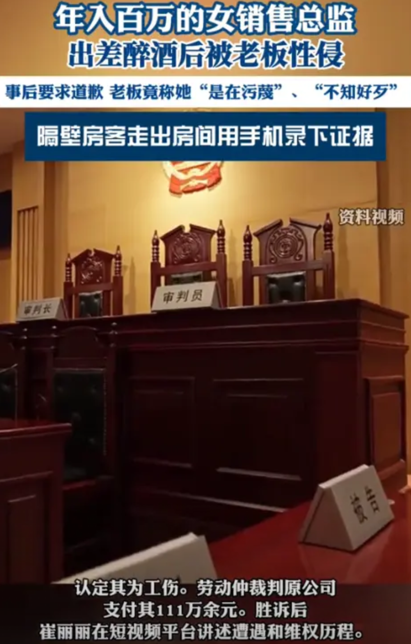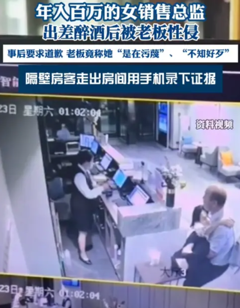 浙江杭州,40岁女子陪老板出差,应酬时喝多了,老板将其抱回酒店,并让保安打开他房间,将女子抱了进去,并强行与女子发生了关系。完事后,女子要求老板道歉。老板骂女子不知好歹。女子咽不下这口气,报了警,要求认定工伤。老板死不承认,没想到警方一帧一帧的查看监控,发现了一关键性证据,老板悲剧了。 据8月7日海报新闻报道,丽丽在汽车行业摸爬滚打了17年,从一名普通业务员一路做到上市公司 营销总监。